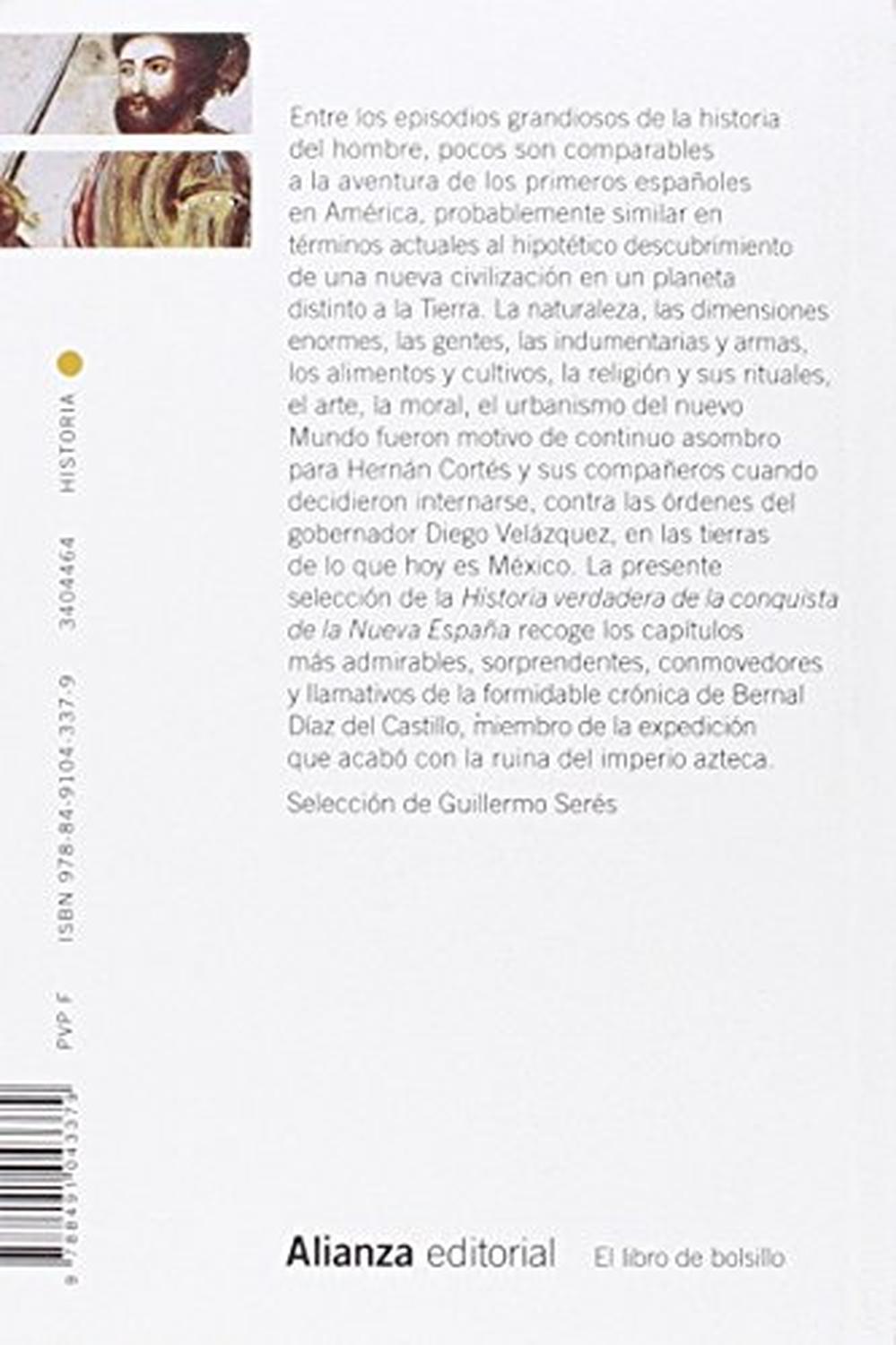 Entre los episodios grandiosos de la historia del hombre, pocos son comparables a la aventura de los primeros españoles en América, probablemente s1milar en términos actuales al hipotético descubrimiento de una nueva civilización en un planeta distinto a la Tierra. La naturaleza, las dimensiones enormes, las gentes, las indumentarias y armas, los alimentos y cultivos, la religión y sus rituales, el arte, la moral, el urbanismo del nuevo Mundo fueron motivo de continuo asombro para Hernán Cortés y sus compañeros cuando decidieron internarse, contra las órdenes del gobernador Diego Velázquez, en las tierras de lo que hoy es México. La presente selección de la Historia verdadera de la conquista de la Nueva España recoge los capítulos más admirables, sorprendentes, conmovedores y llamativos de la formidable crónica de Bernal Díaz del Castillo, miembro de la expedición que acabó con la ruina del imperio azteca.