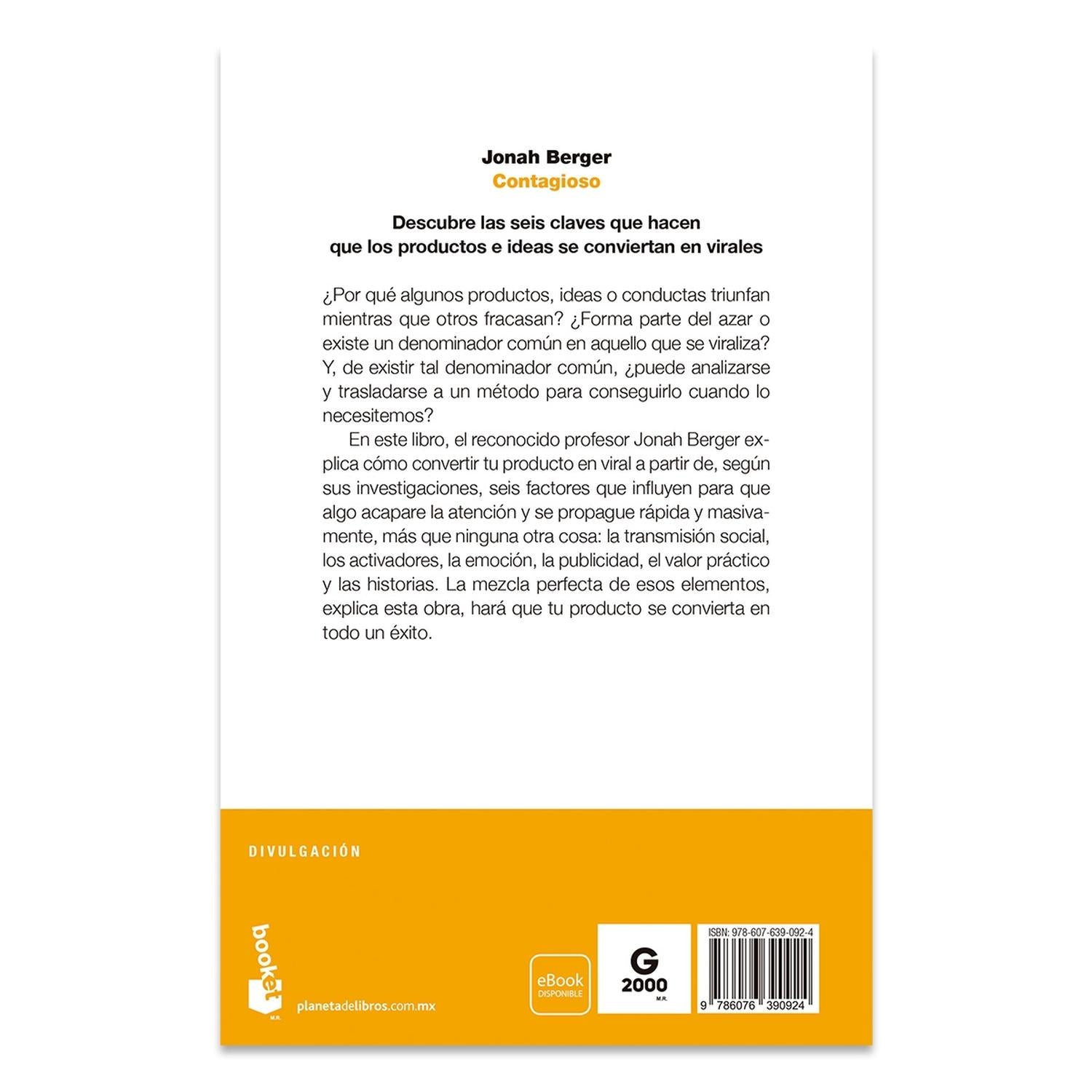 Descripción: Cómo conseguir que tus productos e ideas tengan éxito ¿Qué hace que algo se convierta en viral? Las pulseras amarillas de Livestrong, la dieta Dukan, la canción del Gangnam Style o el cristo de Borja son ejemplos de productos, ideas o conductas que se difunden entre la población hasta convertirse en verdaderas epidemias sociales. Empiezan atacando a un pequeño grupo de individuos u organizaciones y se extienden rápidamente como si de un virus se tratase. ¿A qué se debe? ¿Qué podemos hacer para que esto ocurra con nuestros productos o ideas? Jonah Berger nos lo explica, con todo lujo de detalles y ejemplos, en este libro.