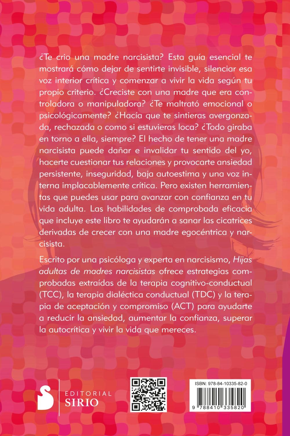 Descripción: ¿Te crió una madre narcisista? Esta guía esencial te mostrará cómo dejar de sentirte invisible, silenciar esa voz interior crítica y comenzar a vivir la vida según tu propio criterio. ¿Creciste con una madre que era controladora o manipuladora? ¿Te maltrató emocional o psicológicamente? ¿Hacía que te sintieras avergonzada, rechazada o como si estuvieras loca? ¿Todo giraba en torno a ella, siempre? El hecho de tener una madre narcisista puede dañar e invalidar tu sentido del yo, hacerte cuestionar tus relaciones y provocarte ansiedad persistente, inseguridad, baja autoestima y una voz interna implacablemente crítica. Pero existen herramientas que puedes usar para avanzar con confianza en tu vida adulta. Las habilidades de comprobada eficacia que incluye este libro te ayudarán a sanar las cicatrices derivadas de crecer con una madre egocéntrica y narcisista. Escrito por una psicóloga y experta en narcisismo, Hijas adultas de madres narcisistas ofrece estrategias comprobadas extraídas de la terapia cognitivo-conductual (TCC), la terapia dialéctica conductual (TDC) y la terapia de aceptación y compromiso (ACT), para ayudarte a reducir la ansiedad, aumentar la confianza, superar la autocrítica y vivir la vida que mereces. Si creciste con una madre narcisista y aún lidias con los efectos de una crianza tóxica, este libro es tu mapa para sanar el pasado y evolucionar, tanto ahora como en el futuro.