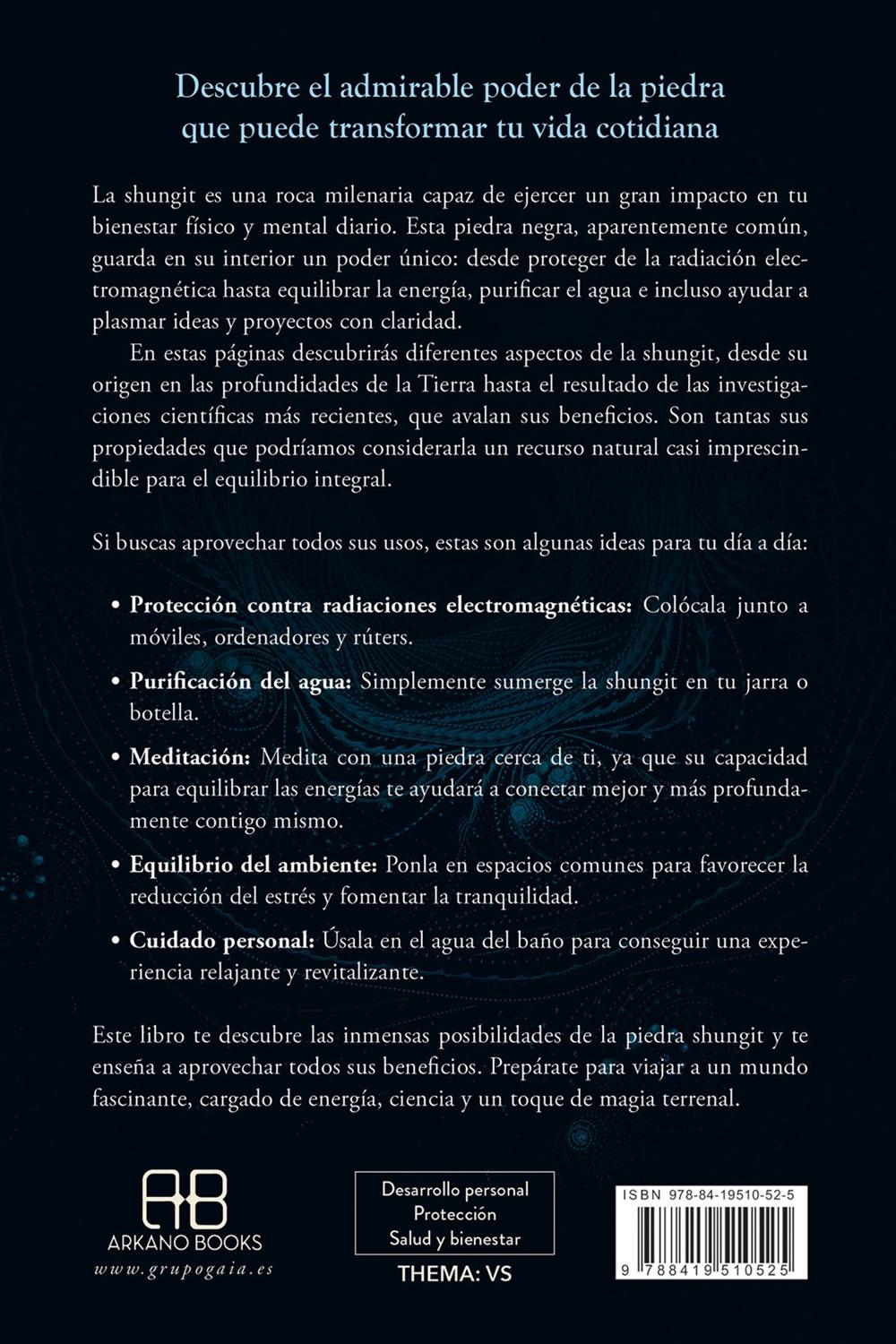 Descripción: Descubre el admirable poder de la piedra que puede transformar tu vida cotidiana. La shungit es una roca milenaria capaz de ejercer un gran impacto en tu bienestar físico y mental diario. Esta piedra negra, aparentemente común, guarda en su interior un poder único: desde proteger de la radiación electromagnética hasta equilibrar la energía, purificar el agua e incluso ayudar a plasmar ideas y proyectos con claridad. En estas páginas descubrirás diferentes aspectos de la shungit, desde su origen en las profundidades de la Tierra hasta el resultado de las investigaciones científicas más recientes, que avalan sus beneficios. Son tantas sus propiedades que podríamos considerarla un recurso natural casi imprescindible para el equilibrio integral.