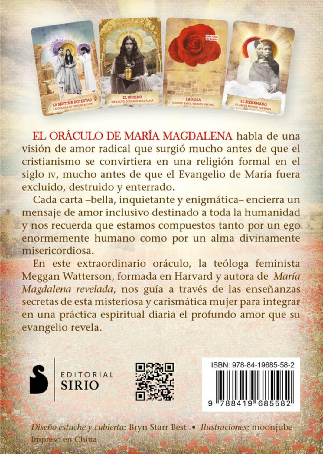 Descripción: El oráculo de María Magdalena habla de una visión de amor radical que surgió mucho antes de que el cristianismo se convirtiera en una religión formal en el siglo IV, mucho antes de que el Evangelio de María Magdalena fuera excluido, destruido y enterrado. Cada carta –bella, inquietante y enigmática– encierra un mensaje de amor inclusivo destinado a toda la humanidad y nos recuerda que estamos compuestos tanto por un ego enormemente humano como por un alma divinamente misericordiosa. En este extraordinario oráculo, la teóloga feminista Meggan Watterson, formada en Harvard y autora de María Magdalena revelada, nos guía a través de las enseñanzas secretas de esta misteriosa y carismática mujer para integrar en una práctica espiritual diaria el profundo amor que su evangelio revela.