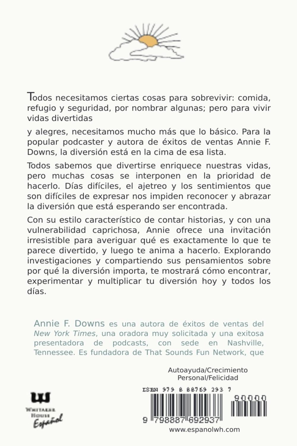 Descripción: Sabemos que hay ciertas cosas que debemos tener para sobrevivir: comida, un techo y seguridad, solo por mencionar algunas de ellas. Sin embargo, también hay aspectos de la vida que verdaderamente nos permiten sentirnos alegres y realizados. Para la popular autora de éxitos de ventas y podcaster Annie F. Downs, la diversión está cerca de lo más alto de esa lista. Pocos discutirían que la diversión no enriquece nuestras vidas, pero se interponen muchas cosas en el camino de llegar a darle prioridad. Días difíciles, estar ocupados, y sentimientos de los que resulta complicado conversar nos alejan de la diversión que está ahí esperando a que la encontremos.