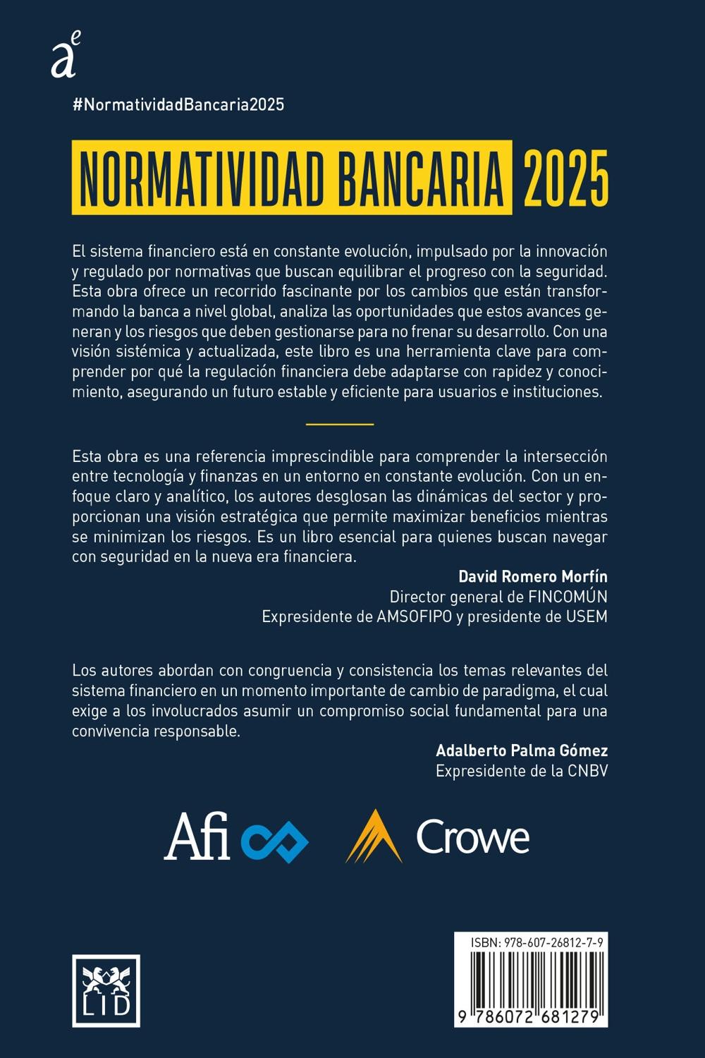 Descripción: En Normatividad Bancaria, un destacado grupo de expertos analiza los desafíos y oportunidades que enfrenta el sistema financiero en medio de la revolución digital originada por la pandemia de COVID-19. El libro ofrece un panorama de la evolución histórica de la banca en México y una visión integral de cómo la tecnología y la regulación están redefiniendo la industria. Los autores no solo explican los cambios recientes, sino que también anticipan tendencias globales, como el impacto de la inteligencia artificial y las nuevas exigencias en la prevención del lavado de dinero. El valor de esta obra radica en su enfoque práctico y propositivo. Es una guía para entender cómo adaptarse a una industria en constante disrupción. El libro destaca por equilibrar rigurosidad académica con accesibilidad, haciendo énfasis en la necesidad de colaboración entre reguladores, instituciones y usuarios para garantizar seguridad sin frenar la innovación, proporcionando herramientas concretas para profesionales del sector. Un texto indispensable para quienes se adentran en el mundo de las finanzas.
