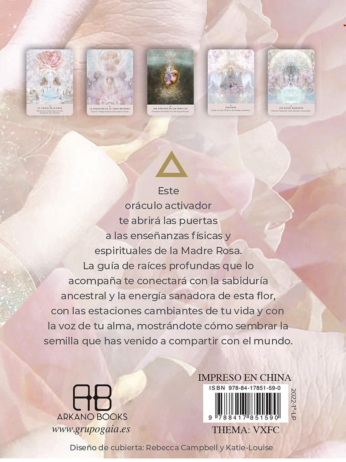 Descripción: Este oráculo activador te abrirá las puertas a las enseñanzas físicas y espirituales de la Madre Rosa. La guía de raíces profundas que lo acompaña te conectará con la sabiduría ancestral y la energía sanadora de esta flor, con las estaciones cambiantes de tu vida y con la voz de tu alma, mostrándote cómo sembrar la semilla que has venido a compartir con el mundo.