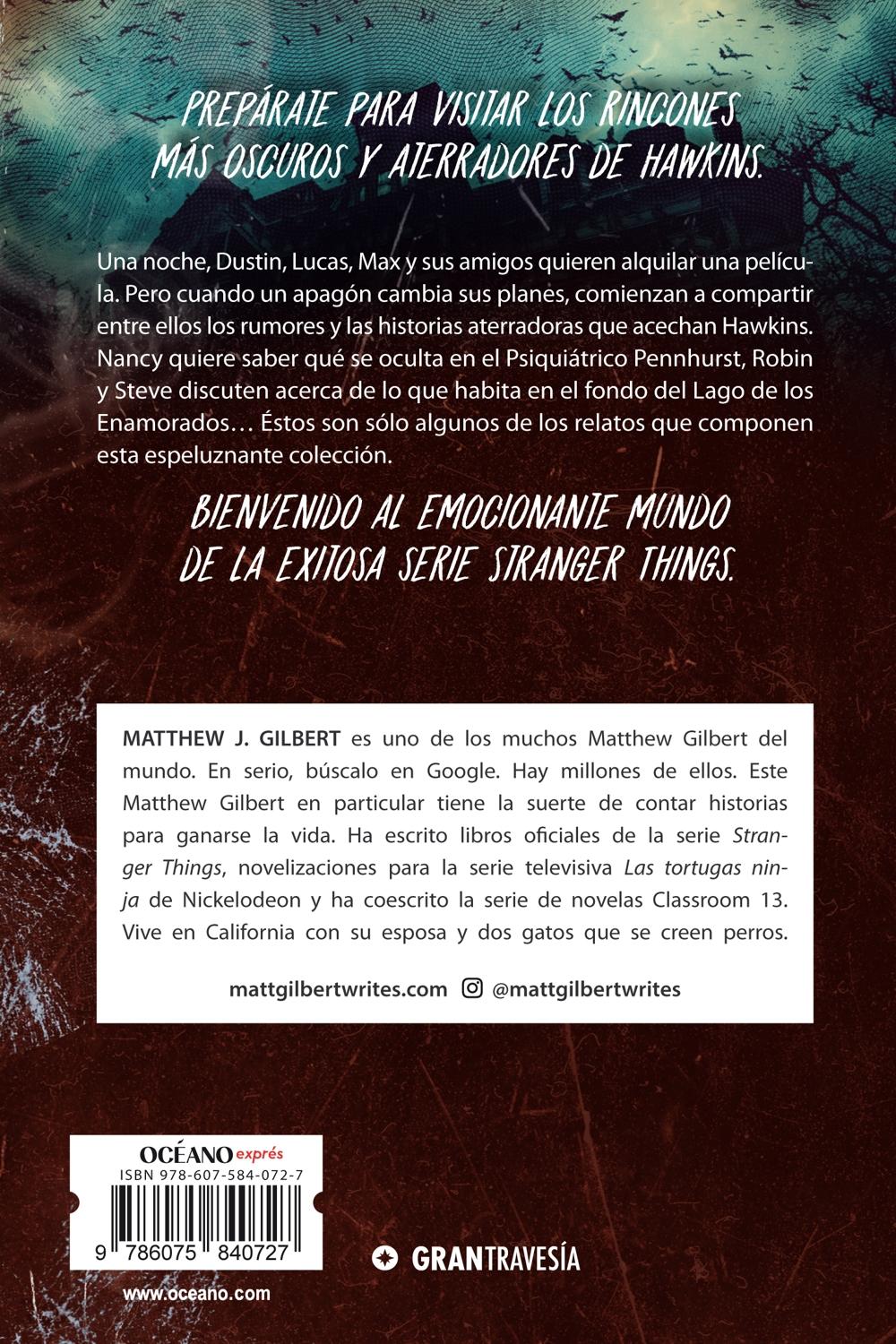 Descripción: Prepárate para visitar los rincones más oscuros y aterradores de Hawkins. Una noche, Dustin, Lucas, Max y sus amigos quieren alquilar una película. Pero cuando un apagón cambia sus planes, comienzan a compartir entre ellos los rumores y las historias aterradoras que acechan Hawkins. Nancy quiere saber qué se oculta en el Psiquiátrico Pennhurst, Robin y Steve discuten acerca de lo que habita en el fondo del Lago de los Enamorados… Éstos son sólo algunos de los relatos que componen esta espeluznante colección.