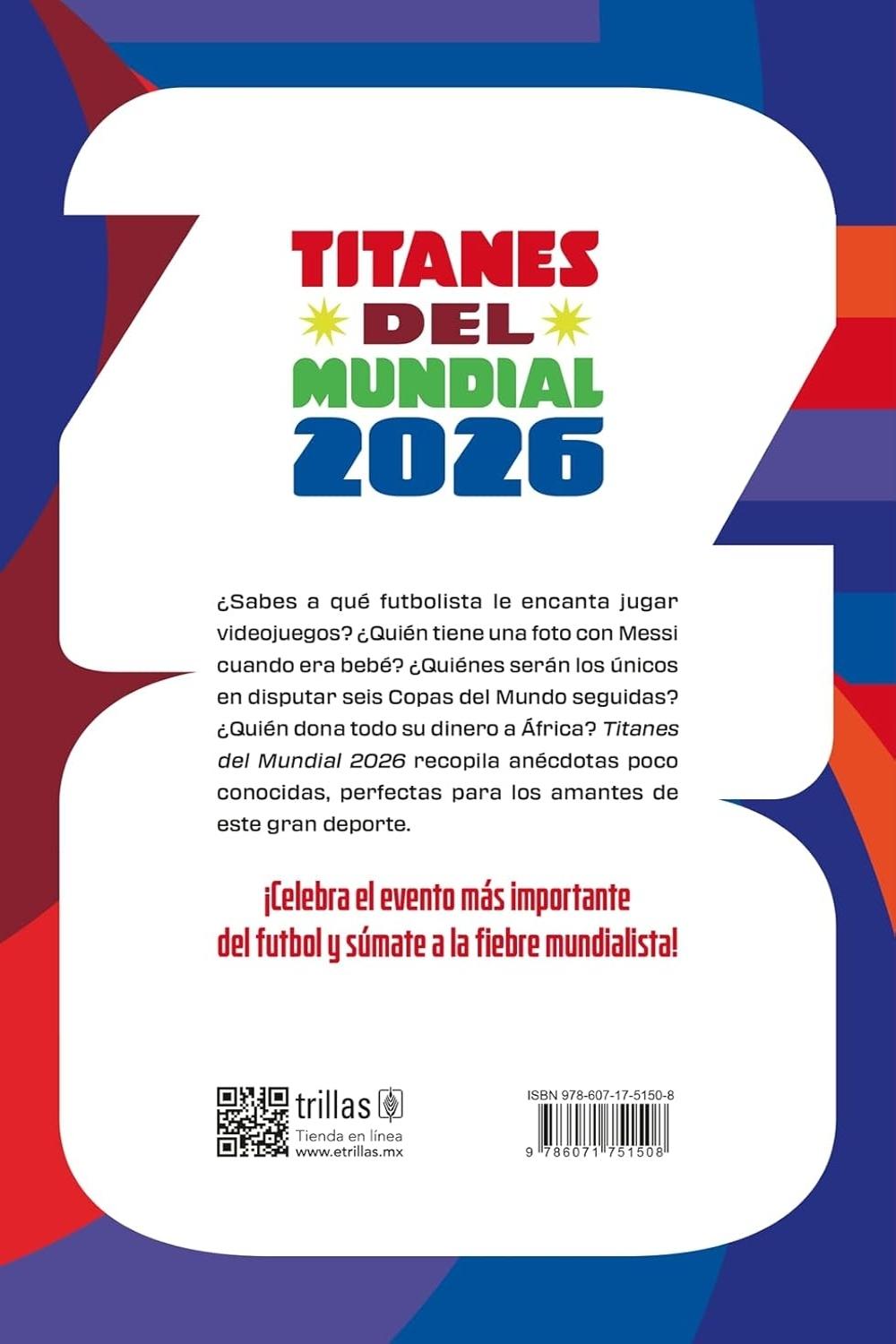 Descripción: ¿Sabes a qué futbolista le encanta jugar videojuegos?, ¿quién tiene una foto con Messi cuando era bebé?, ¿quiénes serán los únicos en disputar seis Copas del Mundo seguidas?, ¿quién dona todo su dinero a África? «Titanes del Mundial 2026» recopila anécdotas poco conocidas, perfectas para los amantes de este gran deporte. ¡Celebra el evento más importante del futbol y súmate a la fiebre mundialista!
