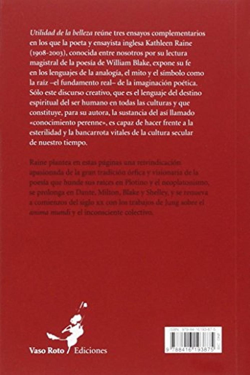 Descripción: Utilidad de la belleza reúne tres ensayos complementarios en los que la poeta y ensayista inglesa Kathleen Raine (1908-2003), conocida entre nosotros por su lectura magistral de la poesía de William Blake, expone su fe en los lenguajes de la analogía, el mito y el símbolo como la raíz -el fundamento real- de la imaginación poética.