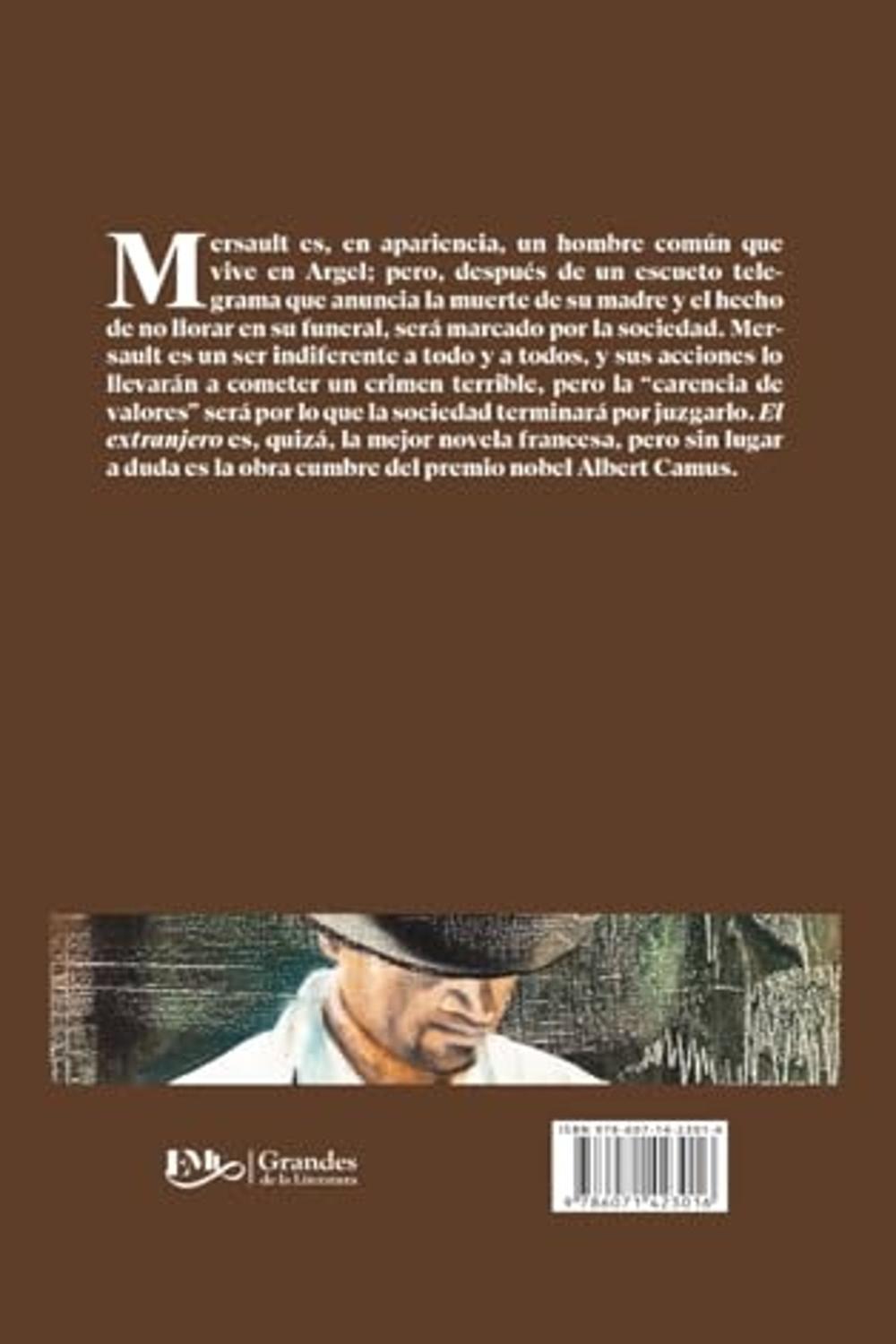 Descripción: Mersault es, en apariencia, un hombre común que vive en Argel; pero, después de un escueto telegrama que anuncia la muerte de su madre y el hecho de no llorar en su funeral, será marcado por la sociedad. Mersault es un ser indiferente a todo y a todos, y sus acciones lo llevarán a cometer un crimen terrible, pero la “carencia de valores” será por lo que la sociedad terminará por juzgarlo. El extranjero es, quizá, la mejor novela francesa, pero sin lugar a duda es la obra cumbre del premio nobel Albert Camus.