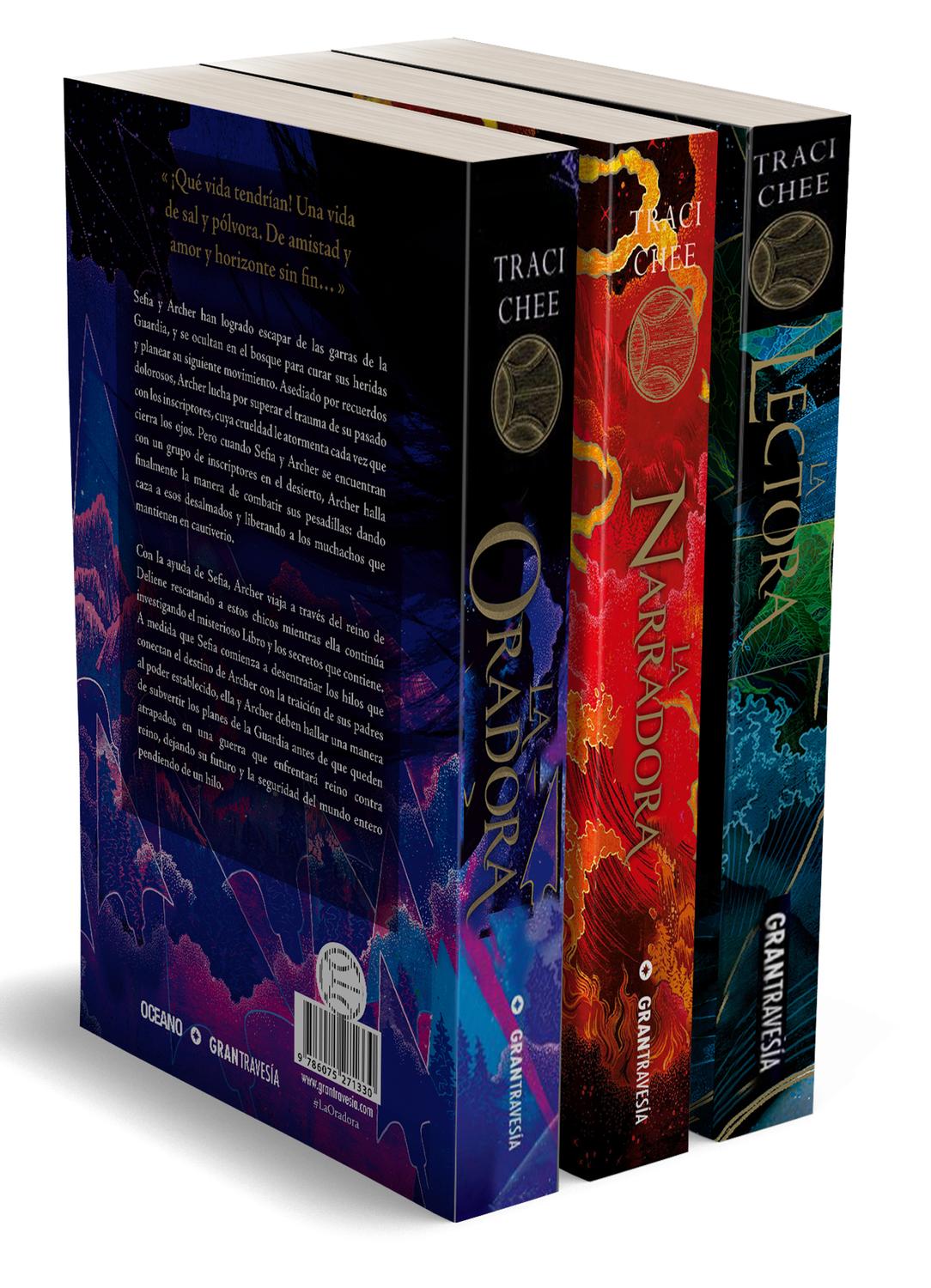 Descripción: La lectora: Sefia es una superviviente. Luego de que su padre fuera brutalmente asesinado, huyó junto a su tía Nin, quien le ha enseñado a sobrevivir en la precariedad del bosque. Allí aprendió a recolectar y cazar, a seguir un rastro y hurtar. Pero su tía es secuestrada. La única pista que Sefia tiene sobre estos dos terribles acontecimientos es un extraño objeto rectangular. Un libro con magia. La oradora: Sefia y Archer acaban de escapar de las garras de la Guardia y continúan con su huida aprovechando la seguridad del bosque para curar sus heridas y planear su siguiente movimiento. Asediado por sus dolorosos recuerdos, Archer lucha por superar el trauma de su pasado con los impresores, cuya crueldad le atormenta cada vez que cierra los ojos. La narradora: Sefia, la lectora, ahora entiende la verdad -el sacrificio- de su pasado, y la tragedia que le avecina el futuro. Y no se detendrá hasta poner a salvo a Archer, hasta alejarlo de las ponzoñosas garras de la Guardia.