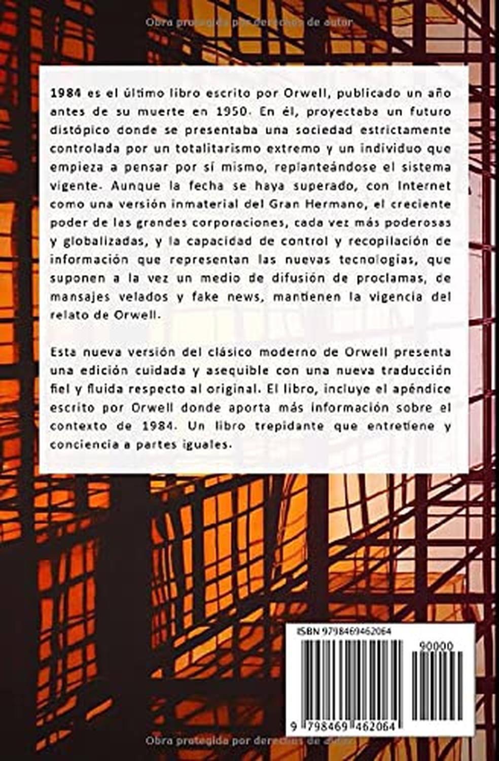 1984 es el último libro escrito por Orwell, publicado un año antes de su muerte en 1950. En él, proyectaba un futuro distópico donde se presentaba una sociedad estrictamente controlada por un totalitarismo extremo y un individuo que empieza a pensar por sí mismo, replanteándose el sistema vigente. Aunque la fecha se haya superado, con Internet como una versión inmaterial del Gran Hermano, el creciente poder de las grandes corporaciones, cada vez más poderosas y globalizadas, y la capacidad de control y recopilación de información que representan las nuevas tecnologías, que suponen a la vez un medio de difusión de proclamas, de mansajes velados y noticias falsas, mantienen la vigencia del relato de Orwell.