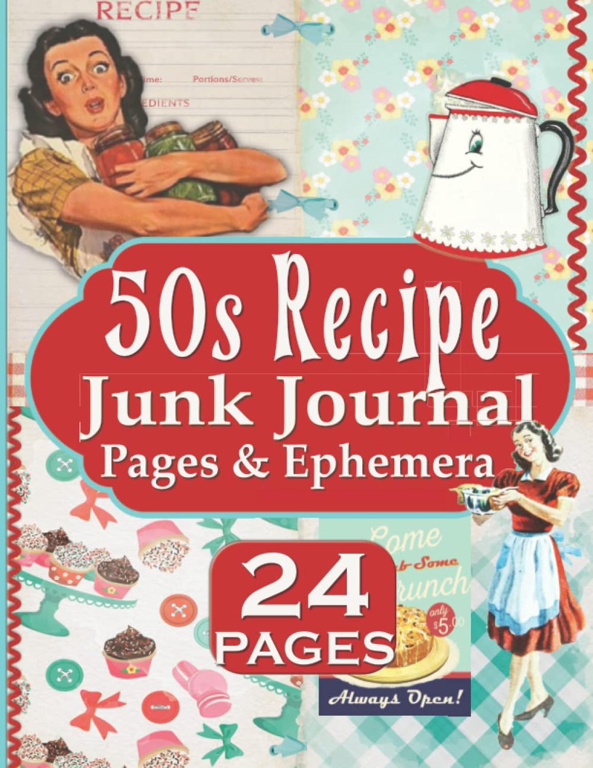 50's Recipe Junk Journal Set - 24 Retro Theme Pages and Ephemera For Scrapbooking