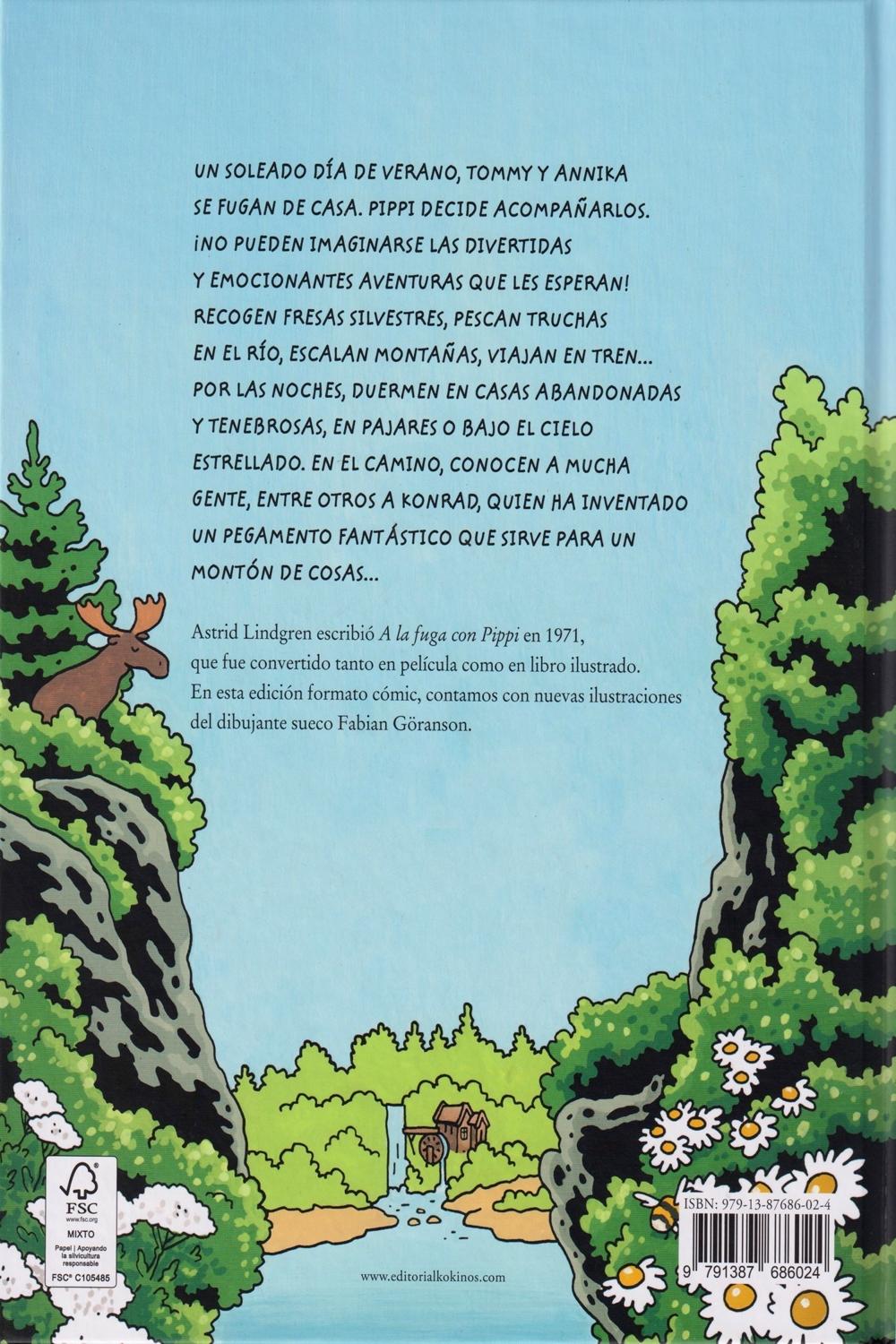 Descripción: Un soleado día, Tommy y Annika, deciden escaparse de casa. Menos mal que, para tranquilidad de su madre, Pippi los acompaña. ¡Aún no saben las divertidas y emocionantes aventuras que les esperan! Recogen fresas silvestres en el bosque y pescan truchas en el río, escalan montañas y viajan en tren. Por las noches, duermen en casas abandonadas espeluznantes, en graneros o bajo el cielo estrellado. En el camino, conocen a muchos personajes, entre ellos a Konrad, que ha inventado un pegamento que sirve para todo.. . . Astrid Lindgren escribió originalmente el guion de Pippi se escapa en 1970 para la exitosa serie de TV que ha dado la vuelta al mundo. La presentamos aquí en formato cómic con ilustraciones creadas por el ilustrador sueco Fabian Göranson.