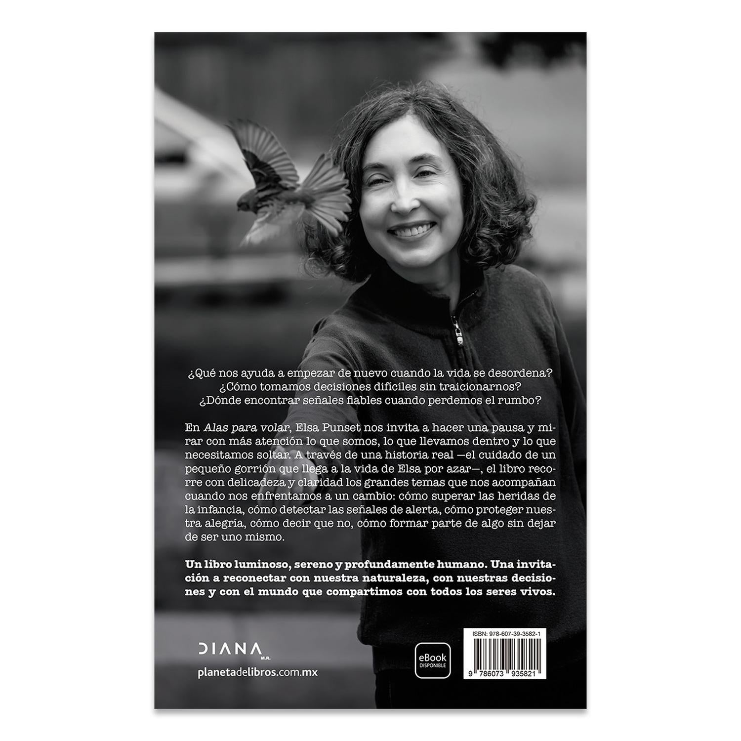 Descripción: Una guía transformadora para volver a empezar. Por la autora que ha inspirado a más de 2.000.000 de lectores ¿Qué nos ayuda a empezar de nuevo cuando la vida se desordena? ¿Cómo tomamos decisiones difíciles sin traicionarnos? ¿Dónde encontrar señales fiables cuando perdemos el rumbo? En Alas para volar, Elsa Punset nos invita a hacer una pausa y mirar con más atención lo que somos, lo que llevamos dentro y lo que necesitamos soltar. A través de una historia real —el cuidado de un pequeño gorrión que llega a la vida de Elsa por azar—, el libro recorre con delicadeza y claridad los grandes temas que nos acompañan cuando nos enfrentamos a un cambio: cómo superar las heridas de la infancia, cómo detectar las señales de alerta, cómo proteger nuestra alegría, cómo decir que no, cómo formar parte de algo sin dejar de ser uno mismo. Un libro luminoso, sereno y profundamente humano. Una invitación a reconectar con nuestra naturaleza, con nuestras decisiones y con el mundo que compartimos con todos los seres vivos.