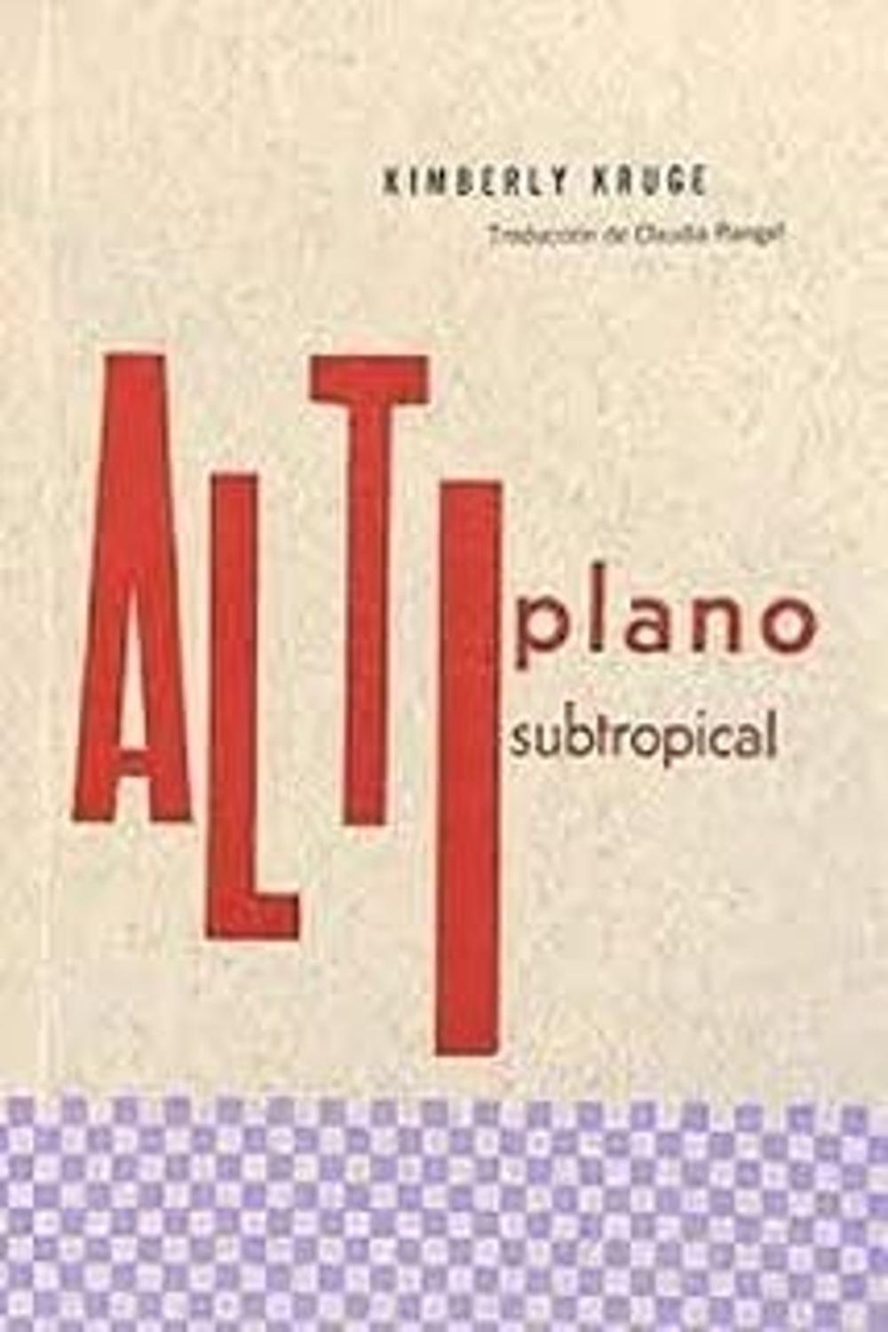 Descripción: Altiplano subtropical de Kimberly Kruge, traducido por Claudia Rangel, es un poemario bilingüe donde la voz de la poeta atraviesa algunos barrios tapatíos, describe sus viajes diarios en la mítica ruta 24 y a través de una mirada fresca, construye un Guadalajara alejado de los espacios comunes. El libro está impreso en linotipia y tipos móviles, con algunas hojas desplegables para permitir que el verso del poema habite la página sin problemas de espacio.
