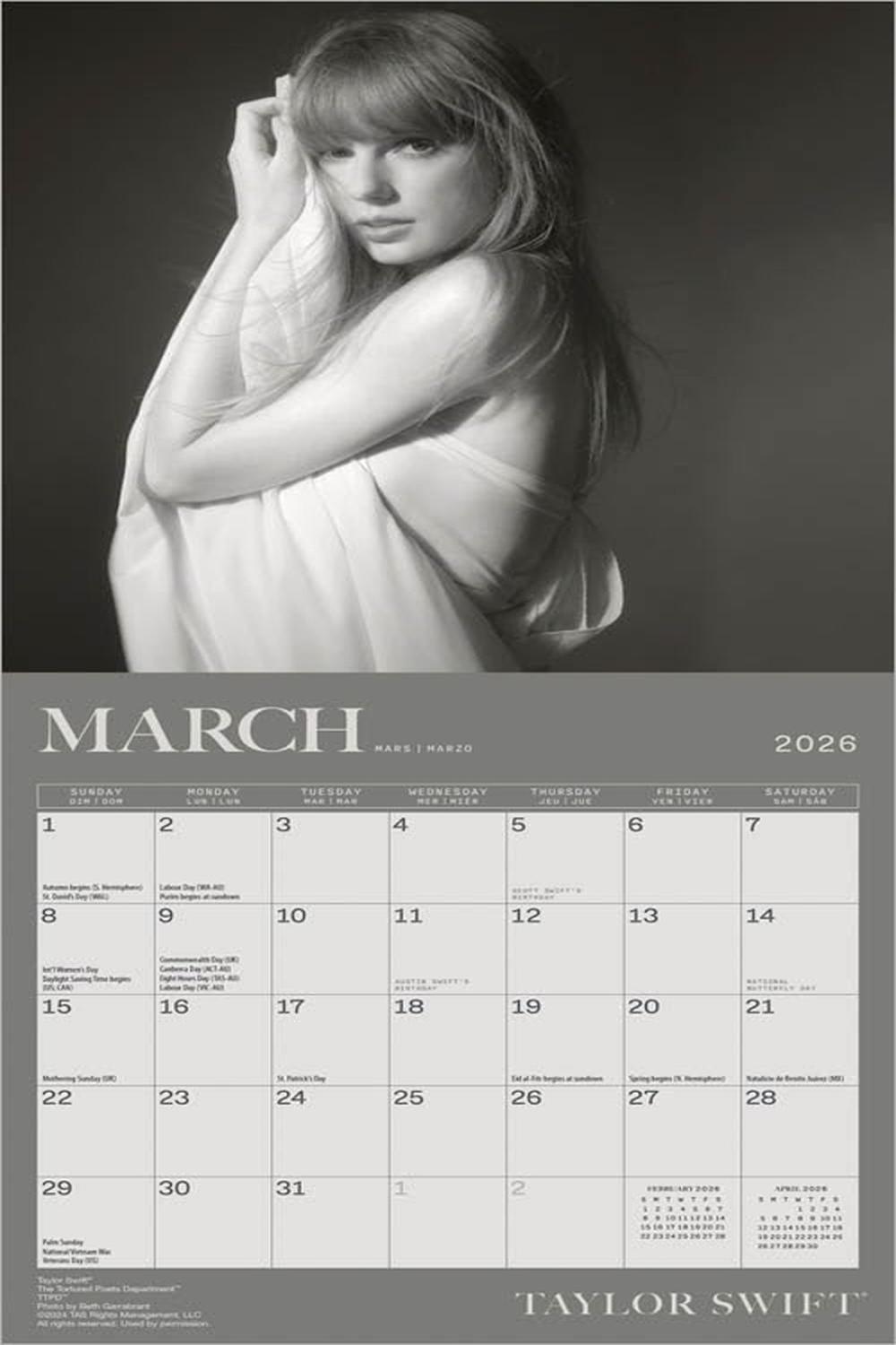 Descripción: Taylor Swift, catorce veces ganadora del Grammy, es la primera y única artista en la historia en ganar el premio GRAMMY al Álbum del Año cuatro veces, el máximo honor de la industria musical. Taylor es cantante, compositora, música, productora y directora. Es la artista más galardonada en la historia de los American Music Awards y los Billboard Awards, y ha recibido dos premios BRIT. Es la primera Mujer de la Década de Billboard y la Mujer del Año más joven de la historia, además de ser la única artista en haber recibido ese título dos veces. El calendario oficial de Taylor Swift incluye fotografías icónicas de su galardonado álbum, The Tortured Poets Department.