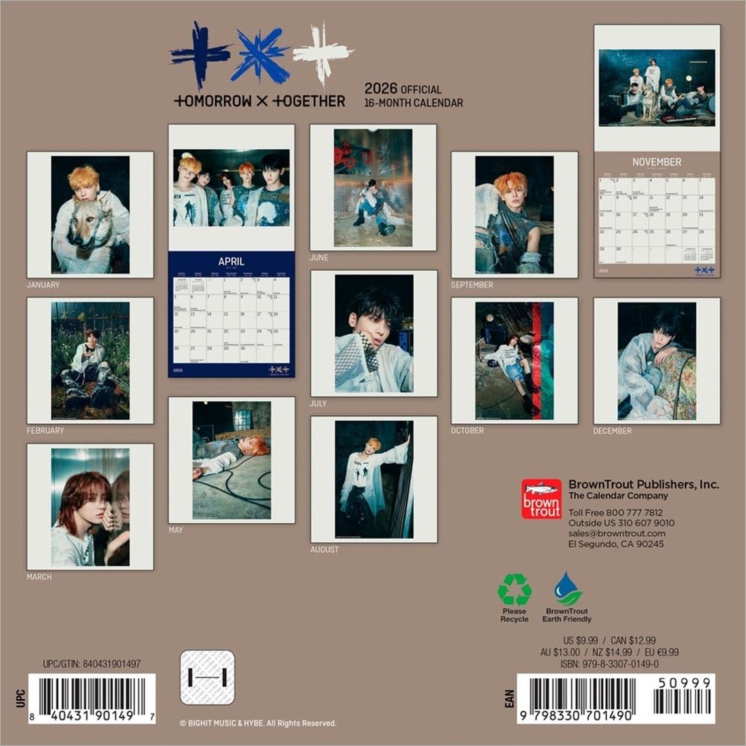 Descripción: TXT, una de las boy bands de K-pop más famosas del mundo actual, fue el primer grupo desde BTS en ser presentado por Big Hit Music y la primera boy band coreana en encabezar el cartel de Lollapalooza. Con una inusual mezcla de indie rock, shoegaze, pop y disco, TXT es apenas el segundo artista de K-pop en la historia en tener cuatro álbumes diferentes en el top 5 del Billboard 200. Imprescindible para el fan que lo tiene todo, el minicalendario oficial de TXT incluye 12 fotos exclusivas de su último álbum, TOMORROW X TOGETHER The Name Chapter: FREEFALL - MELANCHOLY.
