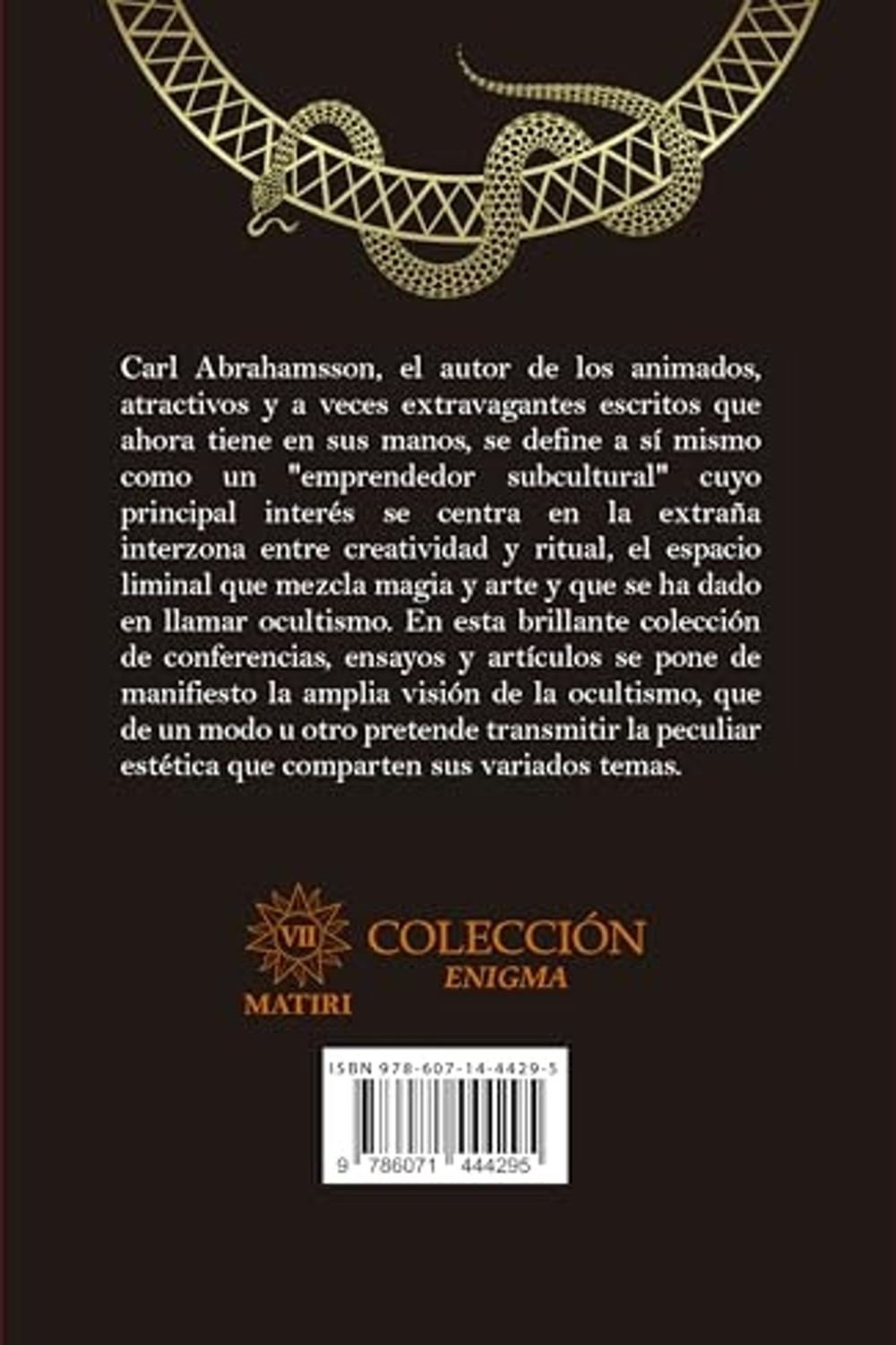 Carl Abrahamsson, el autor de los animados, atractivos y a veces extravagantes escritos que ahora tiene en sus manos, se define a sí mismo como un "emprendedor subcultural" cuyo principal interés se centra en la extraña interzona entre creatividad y ritual, el espacio liminal que mezcla magia y arte y que se ha dado en llamar ocultismo. En esta brillante colección de conferencias, ensayos y artículos se pone de manifiesto la amplia visión de la ocultismo, que de un modo u otro pretende transmitir la peculiar estética que comparten sus variados temas.
