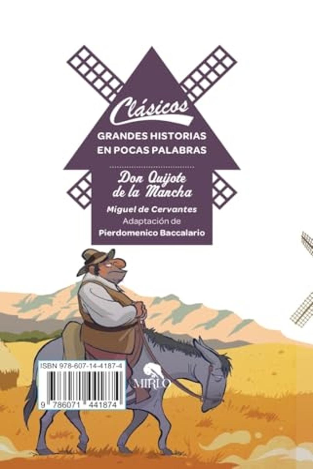 Descripción: (La portada puede variar) Miguel de Cervantes Saavedra era un escritor valiente que vivió hace mucho tiempo en España; él tenía el poder mágico de transformar las palabras en aventuras emocionantes y llenas de diversión. Una de las historias más famosas que Miguel de Cervantes escribió se llama El ingeniosos hidalgo don Quijote de la Mancha, la leyenda de un caballero valiente y soñador que vive en un mundo lleno de molinos de viento y que, además, con su amigo Sancho Panza vive aventuras increíbles mientras busca hacer el bien y proteger a los débiles. Miguel de Cervantes era como un mago de las palabras que nos transportaba a tierras lejanas y nos hacía reír con sus personajes locos y sus situaciones divertidas. Así, sus historias nos enseñan que todos tenemos el poder de ser valientes y hacer el bien en el mundo.