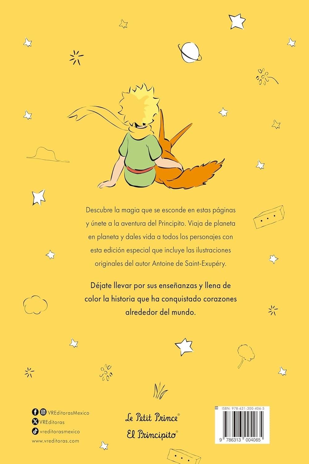 Descripción: Descubre la magia que se esconde en estas páginas y únete a la aventura del Principito. Viaja de planeta en planeta y dales vida a todos los personajes con esta edición especial que incluye las ilustraciones originales del autor Antoine de Saint-Exupéry. Déjate llevar por sus enseñanzas y llena de color la historia que ha conquistado corazones alrededor del mundo.