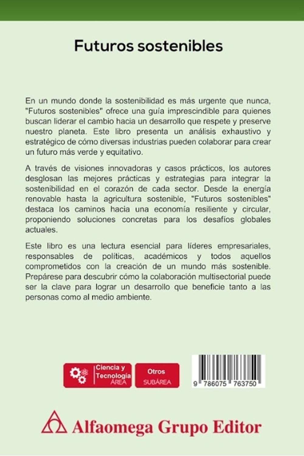 Descripción: En un mundo donde la sostenibilidad es más urgente que nunca, «Futuros sostenibles» ofrece una guía imprescindible para quienes buscan liderar el cambio hacia un desarrollo que respete y preserve nuestro planeta. Este libro presenta un análisis exhaustivo y estratégico de cómo diversas industrias pueden colaborar para crear un futuro más verde y equitativo. A través de visiones innovadoras y casos prácticos, los autores desglosan las mejores prácticas y estrategias para integrar la sostenibilidad en el corazón de cada sector. Desde la energía renovable hasta la agricultura sostenible, «Futuros sostenibles» destaca los caminos hacia una economía resiliente y circular, proponiendo soluciones concretas para los desafíos globales actuales. Este libro es una lectura esencial para líderes empresariales, responsables de políticas, académicos y todos aquellos comprometidos con la creación de un mundo más sostenible. Prepárese para descubrir cómo la colaboración multisectorial puede ser la clave para lograr un desarrollo que beneficie tanto a las personas como al medio ambiente.