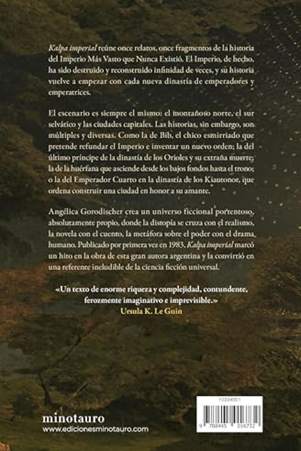 Descripción: Kalpa imperial reúne once relatos, once fragmentos de la historia del Imperio Más Vasto que Nunca Existió. Por el narrador sabemos que el Imperio fue destruido y reconstruido infinidad de veces y que su historia vuelve a empezar con cada nueva dinastía de emperadores y emperatrices. El escenario es siempre el mismo: el montañoso norte, el sur selvático y las ciudades capitales. Las historias son múltiples y diversas. Como la de Bib, el chico esmirriado que pretende refundar el Imperio e inventar un nuevo orden; la del último príncipe de la dinastía de los Orioles y su extraña muerte; la de la huérfana que asciende desde los bajos fondos hasta el trono; la del Emperador Cuarto en las dinastía de los Kiautonor, que manda a construir una ciudad en honor de su amante. Angélica Gorodischer crea un universo ficcional portentoso, absolutamente propio, donde la distopía se cruza con el realismo, la novela con el cuento, la metáfora sobre el poder con el pequeño drama humano. Publicado por primera vez en 1983, Kalpa imperial marcó un hito en la obra de esta gran autora argentina y la convirtió en una referente ineludible de la ciencia ficción universal.