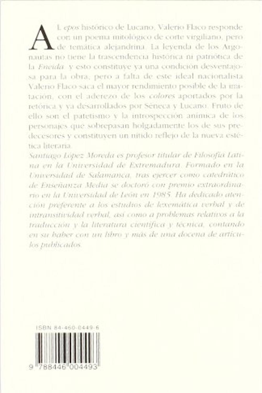 Descripción: En Argonáuticas Valerio Flaco, pese a la moda neoclásica de la época flavia, opta decididamente por los postulados alejandrinos y neotéricos: las fábulas eróticas de la mitología y las digresiones de carácter mitológico y geográfico en el más puro gusto de los colores de la retórica. Lejos de la severidad moral de la Eneida, la obra, concebida como imitación creadora del homónimo poema de Apolonio de Rodas, es el más fiel exponente de una época juzgada como sombra de un pasado glorioso tenido ya por clásico, siendo al mismo tiempo un nítido reflejo de la nueva estética literaria. Buen hijo de la retórica, Valerio Flaco busca en todo momento la concentración dramática y el encumbramiento del pathos, con Séneca y Lucano como referencia obligada.