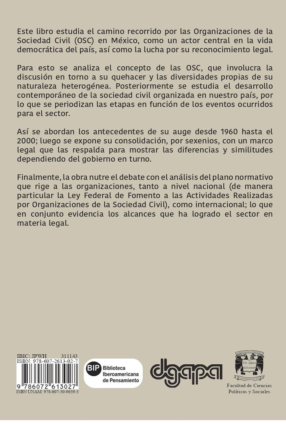 Descripción: Este libro estudia el camino recorrido por las Organizaciones de la Sociedad Civil (OSC) en México, como un actor central en la vida democrática del país, así como la lucha por su reconocimiento legal.