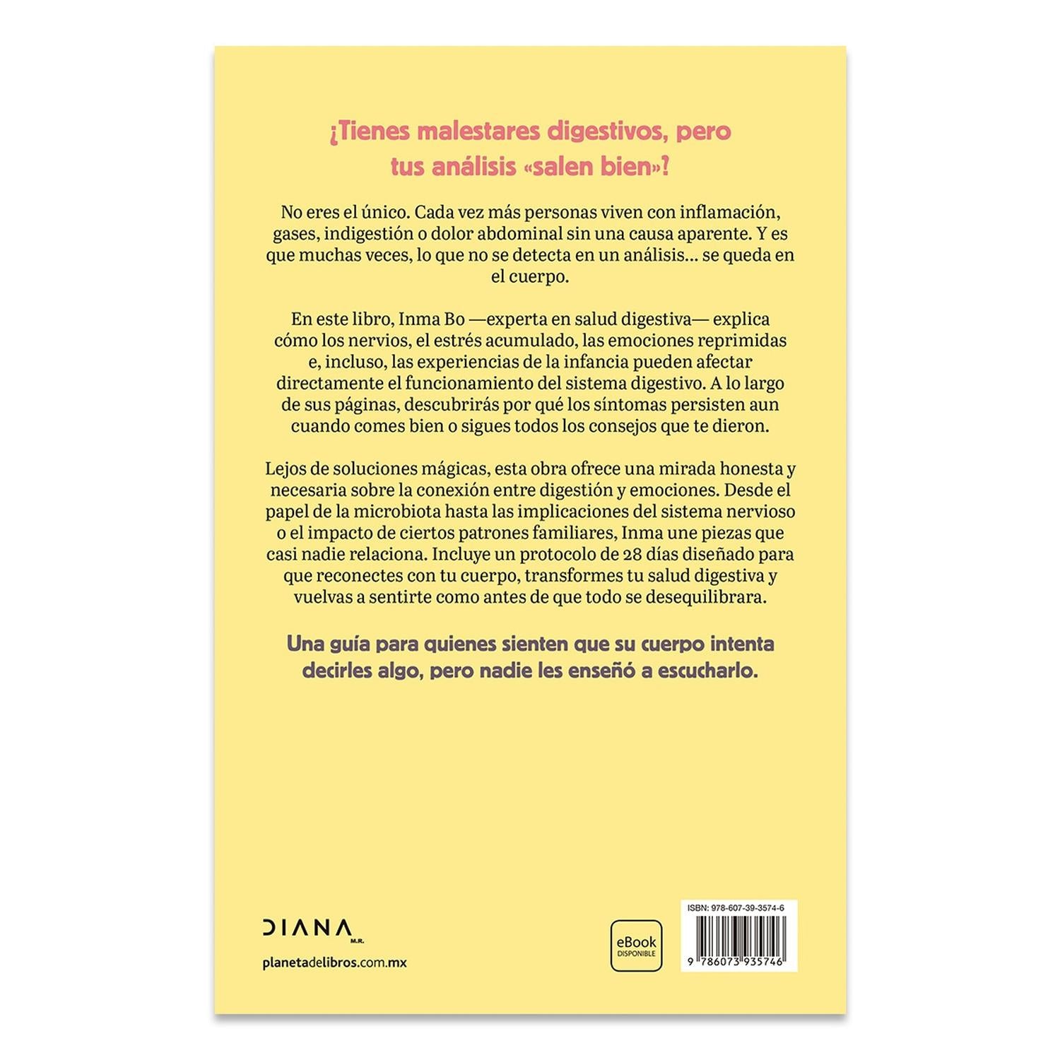 Descripción: Este libro no va contra los médicos, ni contra los suplementos, ni contra las dietas que sigues como si fueran una religión. Va contra la costumbre de mirar el cuerpo como si fuera solo una máquina que se repara, y no una historia que se escucha. Aquí no vas a encontrar recetas mágicas. Vas a encontrar verdades incómodas. Tu cuerpo te habla a través de síntomas: hinchazón, reflujo, cansancio, nudos que no sabes si son digestivos o emocionales. Este libro es para ti si ya has probado de todo y aún no sabes qué te pasa. Si vives en ese limbo entre «puede que sea colon irritable», «igual es SIBO», «quizá es ansiedad» ... o alguna etiqueta nueva que todavía no te han puesto. Y si estás cansado de que te den soluciones para tu cuerpo, cuando en realidad lo que te duele es otra cosa. En estas páginas vas a descubrir: —Qué pasa en tu cuerpo cuando reprimes lo que sientes para no molestar… y por qué eso termina molestando en tu intestino. —Cómo saber si tu estrés nace en tu mente… o en tu estómago. —Por qué no terminas de mejorar, aunque comas bien, tomes suplementos y sigas al pie de la letra todo lo que te dicen. —Lo que nadie te cuenta sobre la inflamación silenciosa, el sistema nervioso y sus consecuencias digestivas. —Estrategias prácticas para calmar tu cuerpo cuando él va por un lado… y tú por otro. —Una guía clara para pasar del «no sé qué me pasa» al «por fin entiendo por dónde empezar». —Casos reales que te ayudarán a entender —y empezar a desbloquear— lo que te ocurre, sin culpas ni etiquetas limitantes. —Recursos prácticos para mejorar tu digestión sin vivir esclavo de una dieta o de tus síntomas. —Un plan detallado de 28 días, paso a paso, para mejorar tus problemas digestivos sin agobios, sin obsesiones y sin protocolos eternos. —Y muchas más herramientas para reconectar con tu cuerpo… y con tu vida. Este no es un libro para leer, es un libro para digerir. Y puede que, por primera vez, sientas que ahora sí: sabes por dónde empezar.