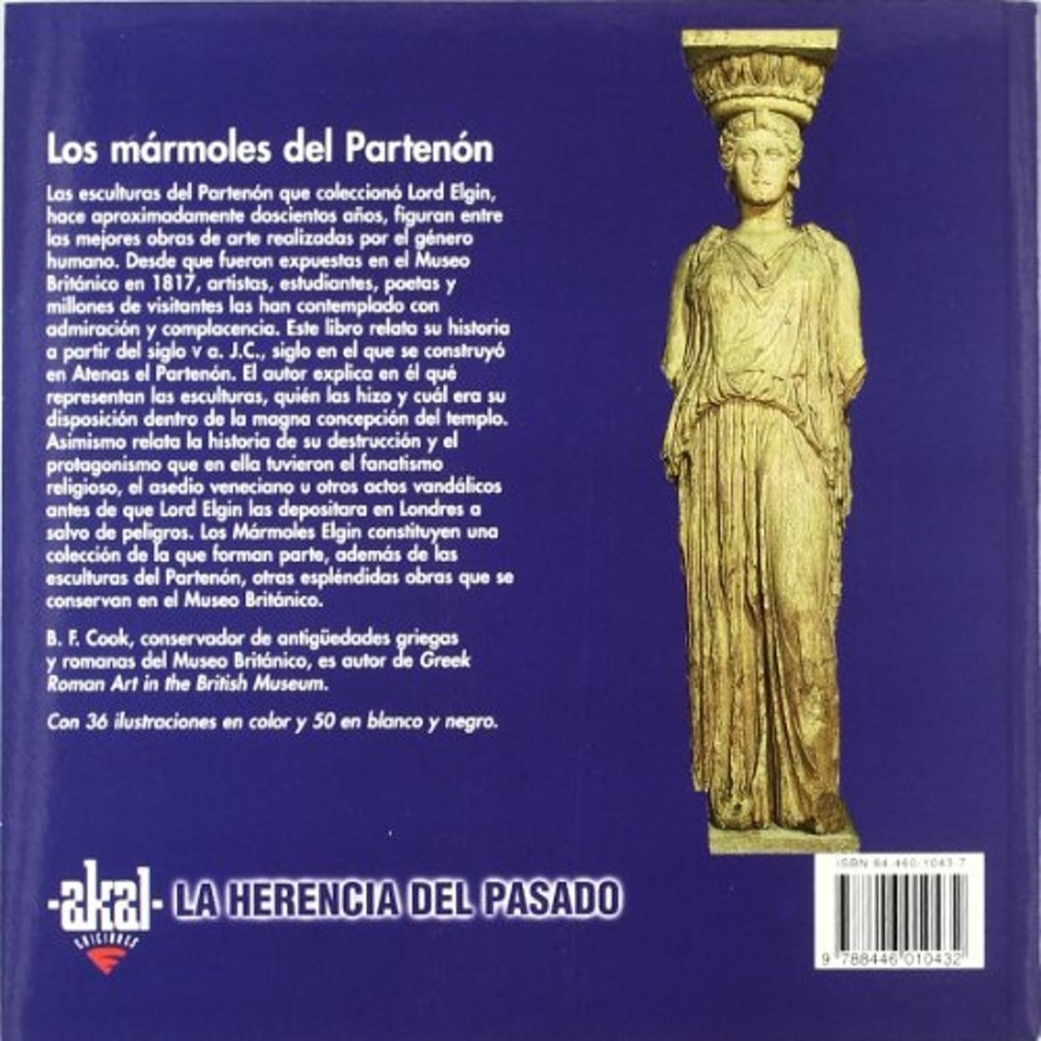 Descripción: El libro constituye un análisis detallado y sencillo de las más famosas esculturas del arte griego que, procedentes del Partenón de Atenas, se conservan desde el pasado siglo en el Museo Británico (British Museum). La obra va abundantemente ilustrada con un total de 86 fotografías (36 de ellas reproducidas en color).