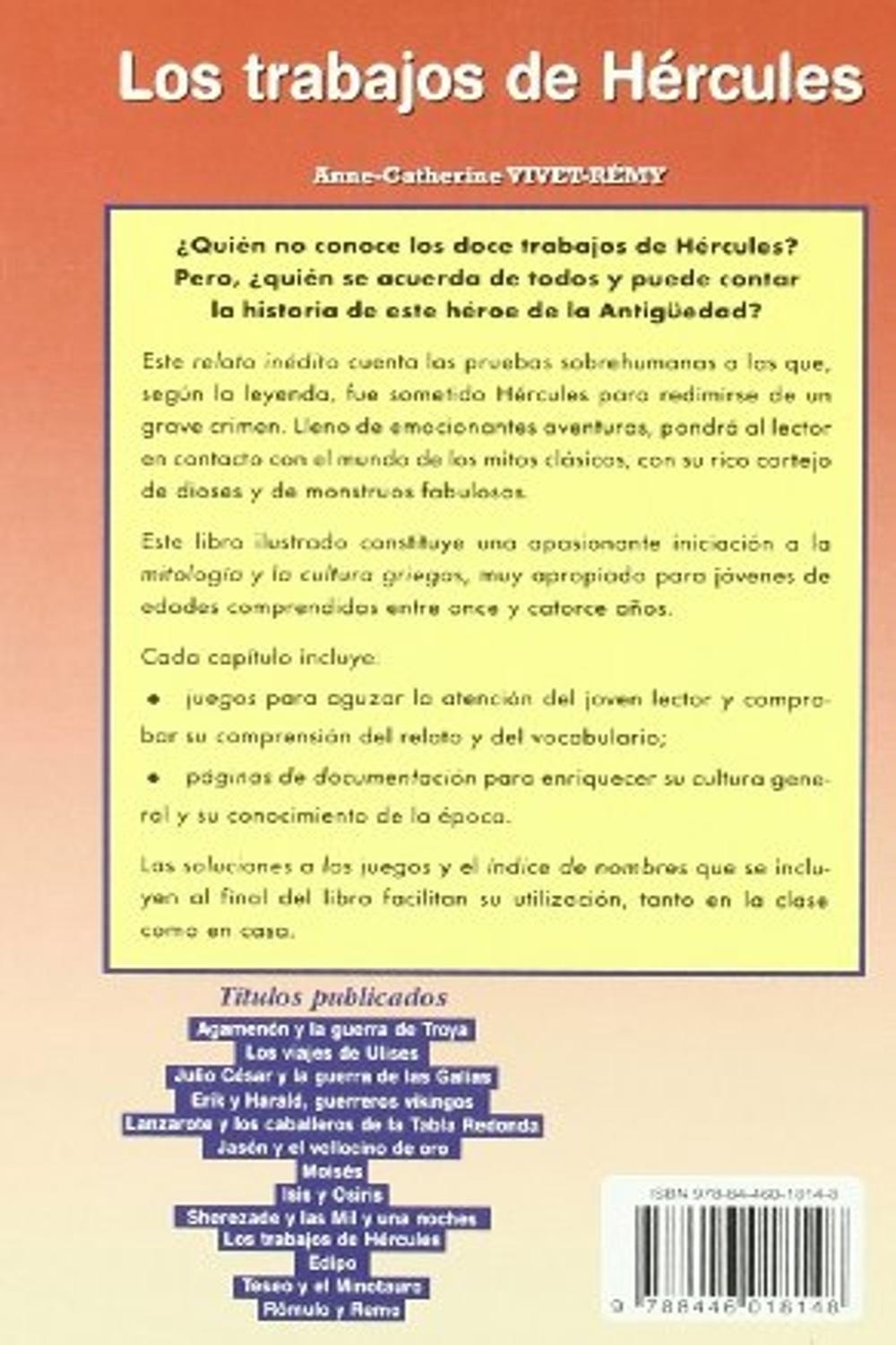 Descripción: De entre todos los héroes griegos, probablemente ninguno haya alcanzado tanta fama como Hércules. En los distintos capítulos del presente libro, el joven lector conocerá los motivos que le llevaron a afrontar los legendarios doce trabajos que tuvo que realizar para el rey Euristeo de Tirinto, desde el enfrentamiento con el león de Nemea hasta su descenso a los Infiernos. Un apasionante relato que le pondrá en contacto con el mundo de los mitos clásicos, con su rico cortejo de dioses y de monstruos fabulosos. El texto se completa con bloques de juegos, que facilitan una mejor comprensión de lo leído, y con informaciones complementarias sobre diversos aspectos (religión, literatura, historia) del mundo griego.