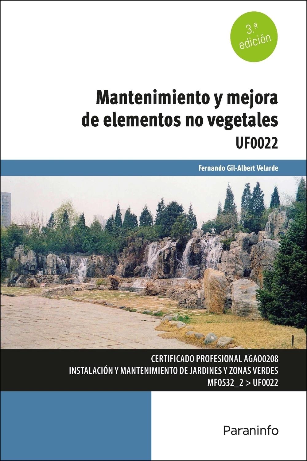 Descripción: El libro, que complementa el publicado referente al Mantenimiento y mejora de elementos vegetales, expone las intervenciones y trabajos de limpieza, conservación, reparación y renovación que puedan ser necesarias a lo largo del año en los elementos y componentes no vegetales del jardín, parque o espacio verde tanto en las infraestructuras establecidas, como en las instalaciones de todo tipo, equipamientos y mobiliario que nos podemos encontrar en cada caso y que pueden alcanzar un alto y muy complejo nivel tecnológico.
