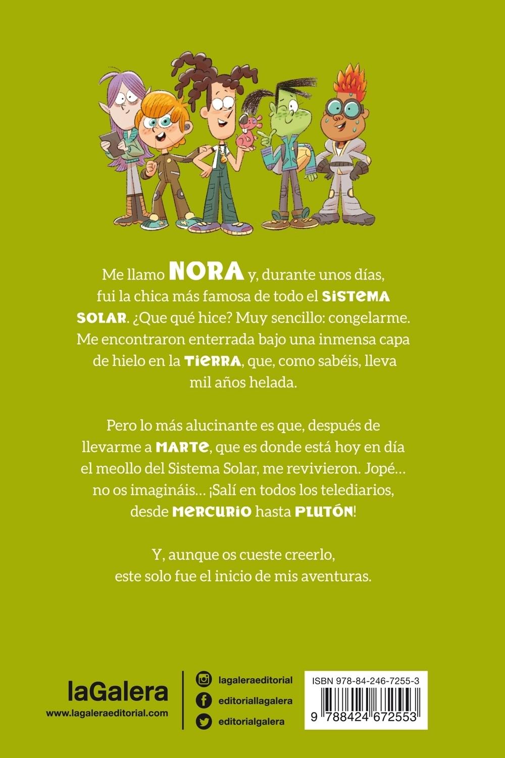 Descripción: ¡La novela con la que querrás mudarte a Marte! Me llamo Nora y, durante unos días, fui la chica más famosa del planeta Marte. ¿Que qué hice? Muy sencillo: congelarme. Me encontraron enterrada bajo una inmensa capa de hielo en la Tierra, que, como sabéis, lleva mil años congelada. Pero lo más alucinante es que, después de llevarme a Marte, que es donde está hoy en día el meollo del sistema solar, me revivieron. Jope no os lo imagináis ¡Salí en todos los telediarios, desde Mercurio hasta Plutón! Y, aunque os cueste de creer, este solo fue el inicio de mis aventuras. ¿Me acompañáis? Entra en el universo de Nora Frost, la niña más famosa del sistema solar