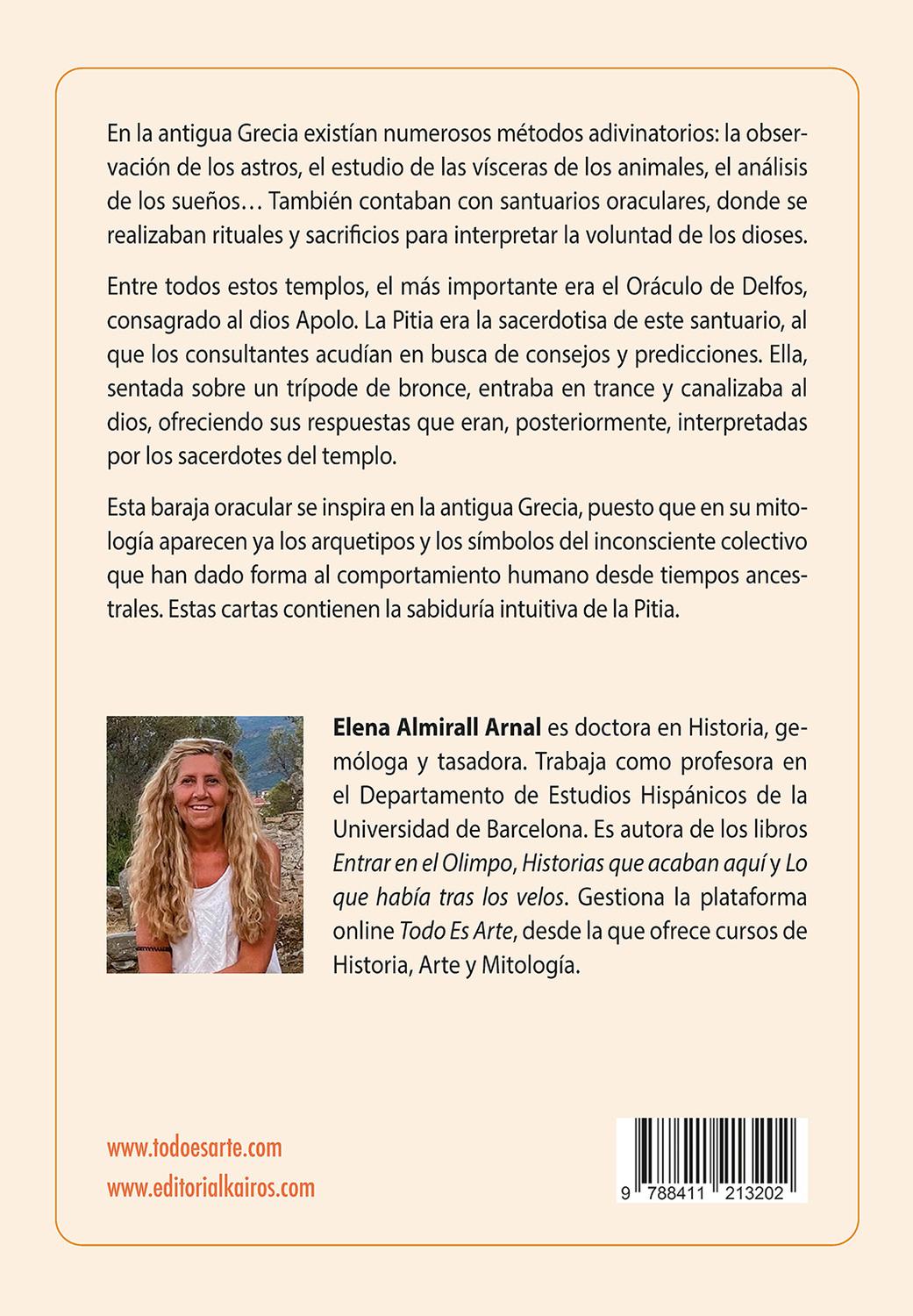 Descripción: En la antigua Grecia existían numerosos métodos adivinatorios: la observación de los astros, el estudio de las vísceras de los animales, el análisis de los sueños… También contaban con santuarios oraculares, donde se realizaban rituales y sacrificios para interpretar la voluntad de los dioses. Entre todos estos templos, el más importante era el Oráculo de Delfos, consagrado al dios Apolo. La Pitia era la sacerdotisa de este santuario, al que los consultantes acudían en busca de consejos y predicciones. Sentada sobre un trípode de bronce, entraba en trance y canalizaba al dios, ofreciendo respuestas que luego eran interpretadas por los sacerdotes del templo. Esta baraja oracular se inspira en la antigua Grecia, ya que en su mitología aparecen arquetipos y símbolos del inconsciente colectivo que han dado forma al comportamiento humano desde tiempos ancestrales. Estas cartas contienen la sabiduría intuitiva de la Pitia y nos sirven como herramienta de introspección y autoconocimiento.