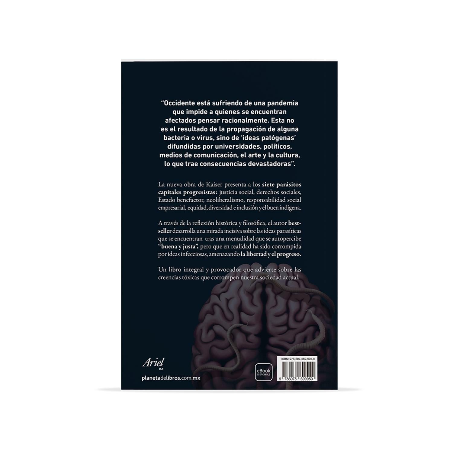 Descripción: ¿Es usted portador de parásitos mentales? “Occidente está sufriendo de una pandemia que impide a quienes se encuentran afectados pensar racionalmente. Esta no es el resultado de la propagación de alguna bacteria o virus, sino de ‘ideas patógenas’ difundidas por universidades, políticos, medios de comunicación, el arte y la cultura, lo que trae consecuencias devastadoras”. La nueva obra de Kaiser presenta a los siete parásitos capitales progresistas: justicia social, derechos sociales, Estado benefactor, neoliberalismo, responsabilidad social empresarial, diversidad equidad e inclusión y el buen indígena. A través de la reflexión histórica y filosófica, el autor bestseller desarrolla una mirada incisiva sobre las ideas parasíticas que se encuentran tras una mentalidad que se autopercibe “buena y justa”, pero que en realidad ha sido corrompida por ideas infecciosas, amenazando la libertad y el progreso. Un libro integral y provocador que advierte sobre las creencias tóxicas que corrompen nuestra sociedad actual."