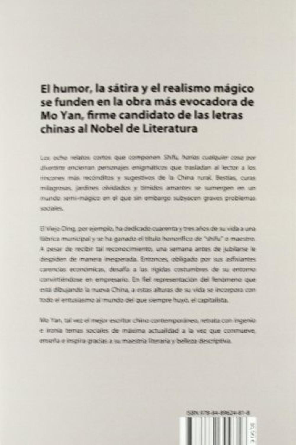 Descripción: Esta novela de Mo Yan sorprende por fragmentarse en ocho relatos breves. El protagonista es el viejo Ding, un hombre que ha dedicado 43 años de su vida a una fábrica municipal ganadera y se ha ganado el título honorífico de "shifu" o maestro. A pesar de recibir tal reconocimiento y una semana antes de jubilarse le despiden de manera inesperada. A partir de ese momento decide convertirse en un empresario. A estas alturas de su vida se adentra en el mundo capitalista, símbolo de la población china tratando de dar la cara a la China moderna.