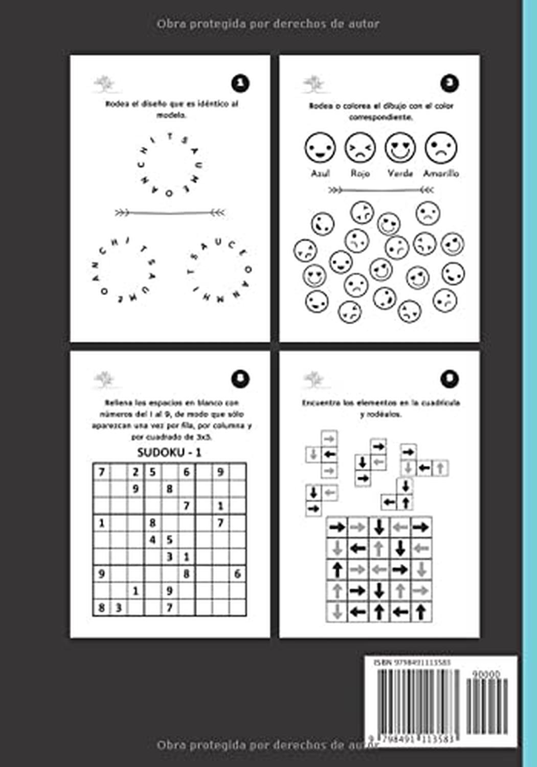 Este libro de actividades le permitirá estimular su memoria de diferentes maneras (memoria visual, memoria de trabajo, memoria espacial...) y entrenar sus capacidades atencionales. También es perfecto para estimular las funciones cognitivas de las personas mayores con demencia leve o moderada.