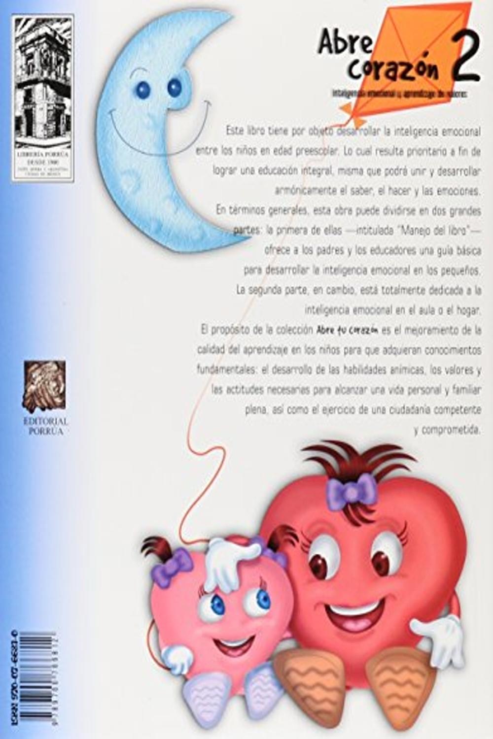 Descripción: Este libro tiene por objeto desarrollar la inteligencia emocional entre los niños en edad preescolar. Lo cual resulta prioritario a fin de lograr una educación integral, misma que podrá unir y desarrollar armónicamente el saber, el hacer y las emociones. En términos generales, esta obra puede dividirse en dos grandes partes: la primera de ellas intitulada "Manejo del libro" ofrece a los padres y los educadores una guía básica para desarrollar la inteligencia emocional en los pequeños. La segunda parte, en cambio, está totalmente dedicada a la inteligencia emocional en el aula o el hogar. El propósito de la colección Abre tu corazón es el mejoramiento de la calidad del aprendizaje en los niños para que adquieran conocimientos fundamentales: el desarrollo de las habilidades anímicas, los valores y las actitudes necesarias para alcanzar una vida personal y familiar plena, así como el ejercicio de una ciudadanía competente comprometida.