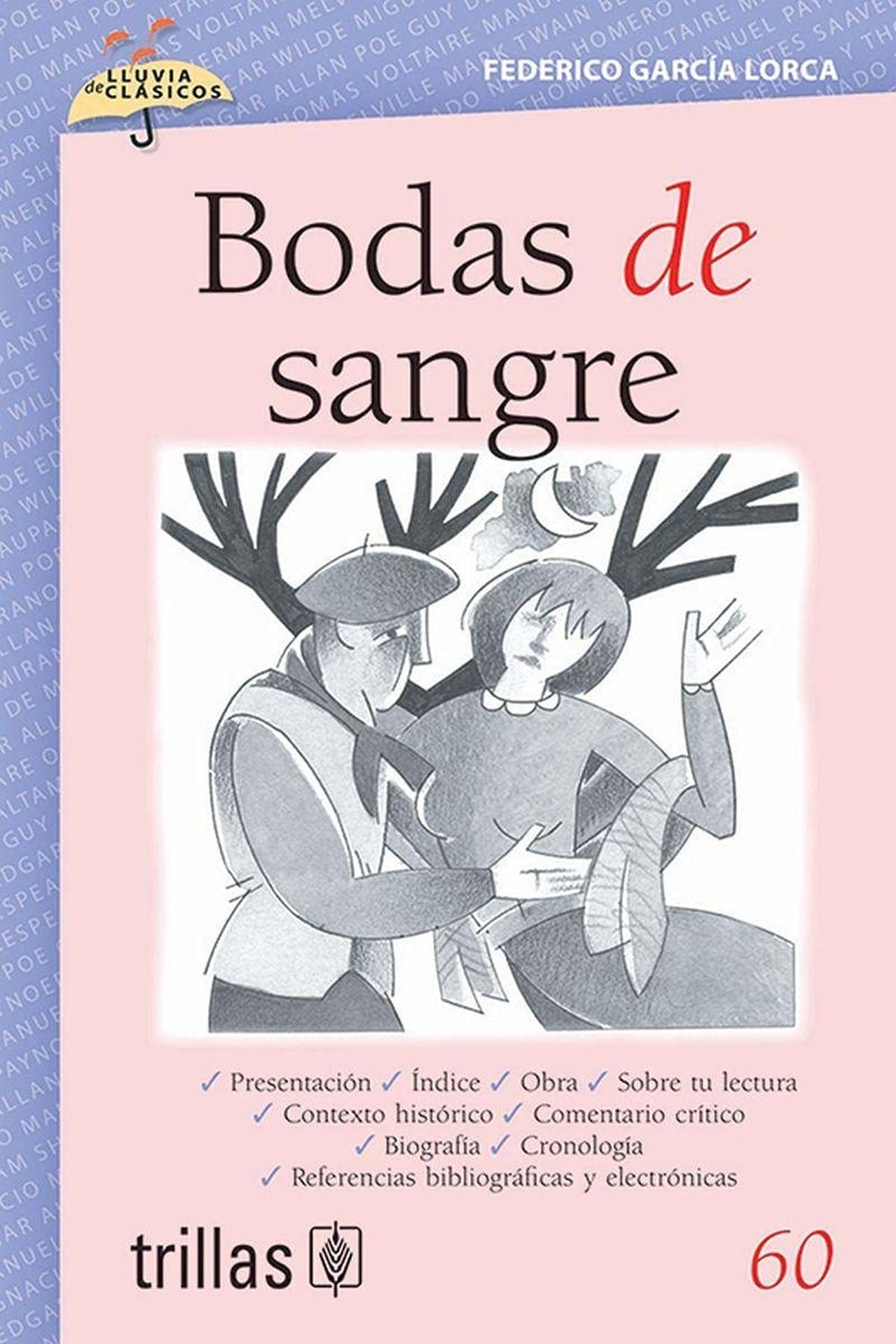 Descripción: En Bodas de Sangre Federico García Lorca pone de manifiesto las pasiones humanas más intensas como el amor, la violencia y la propia muerte. Puesta en escena por primera vez en 1933, la obra está basada en un hecho real, ocurrido en un pequeño pueblo de Almería: tragedia de la muerte del Novio y el antiguo pretendiente de una Novia en su noche de bodas.Paralelamente a ello, la obra plantea una vieja rencilla entre dos conocidas familias: por parte del Novio los Félix y la Madre, que ha perdido a uno de sus hijos y a su propio marido; y por la otra, la familia de Leonardo, aún enamorado de la Novia, quien durante la boda abandona al Novio para huir con su antiguo amor.La organización de la boda pactada entre dos familias, aunado a la indecisión de la Novia y el regreso de un antiguo amor; encarnado en la figura de Leonardo, sostienen el argumento. La tensión aumenta conforme avanza la trama, hasta que culmina en un trágico desenlace.