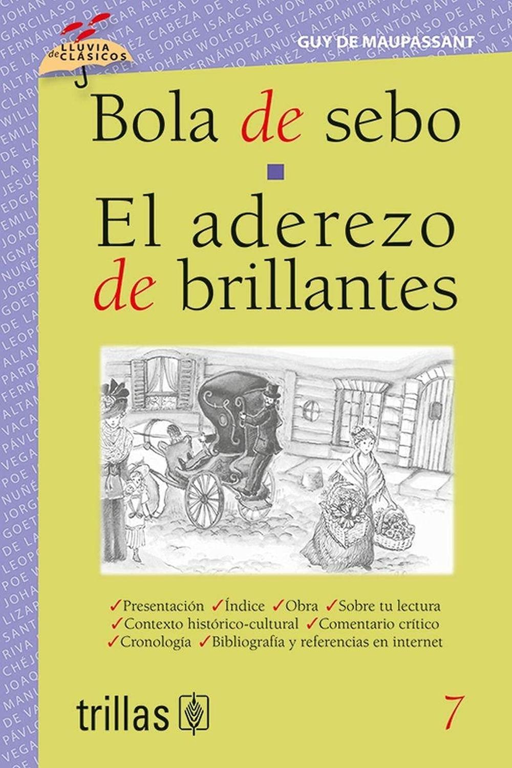 Descripción: Estos dos cuentos de Maupassant dan ejemplo de su maestría como escritor.En el primer cuento, en la Francia del siglo XIX ocupada por el ejército de Prusia un coche lleva nueve pasajeros que representan las posturas políticas de la época.Será Bola de Sebo, una joven galante de quien nada se espera, la que los salve del sitio prusiano con un gran sacrificio.En la segunda historia, el matrimonio Loisel enfrenta con valentia y honradez la pérdida de un collar de brillantes.