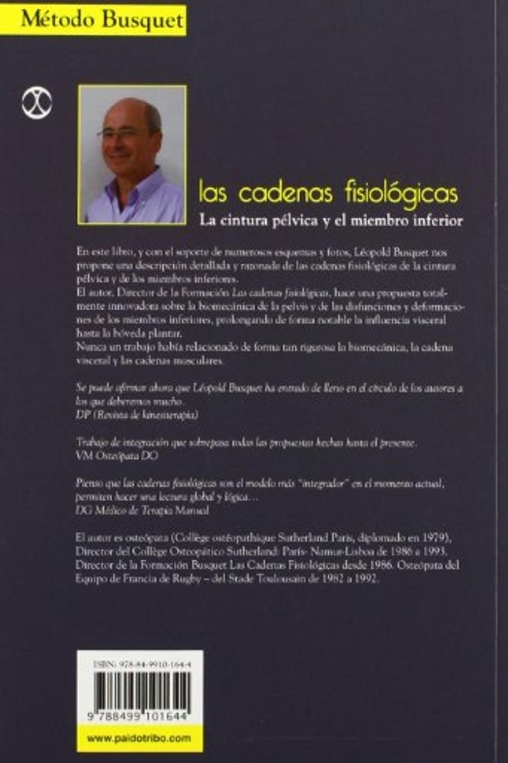 Descripción: En este libro, y con el soporte de numerosos esquemas y fotos, léopold busquet nos propone una descripción detallada y razonada de las cadenas fisiológicas de la cintura pélvica y de los miembros inferiores.brel autor, director de la formación las cadenas fisiológicas, hace una propuesta totalmente innovadora sobre la biomecánica de la pelvis y de las disfunciones y deformaciones de los miembros inferiores, prolongando de forma notable la influencia visceral hasta la bóveda plantar.brnunca un trabajo había relacionado de forma tan rigurosa la biomecánica, la cadena visceral y las cadenas musculares.brse puede afirmar ahora que léopold busquet ha entrado de lleno en el círculo de los autores a los que deberemos mucho.brdp (revista de kinesiterapia)br trabajo de integración que sobrepasa todas las propuestas hechas hasta el presente.brvm osteópata dobrpienso que las cadenas fisiológicas son el odelo más “integrador” en el momento actual, permiten hacer una lectura global y lógica...brdg médico de terapia manualbrel autor es osteópata (collège ostéopathique sutherland paris, diplomado en 1979), director del collège osteopático sutherland: parís- namur-lisboa de 1986 a 1993.director de la formación busquet las cadenas fisiológicas desde 1986. osteópata del equipo de francia de rugby-del stade toulousain de 1982 a 1992.