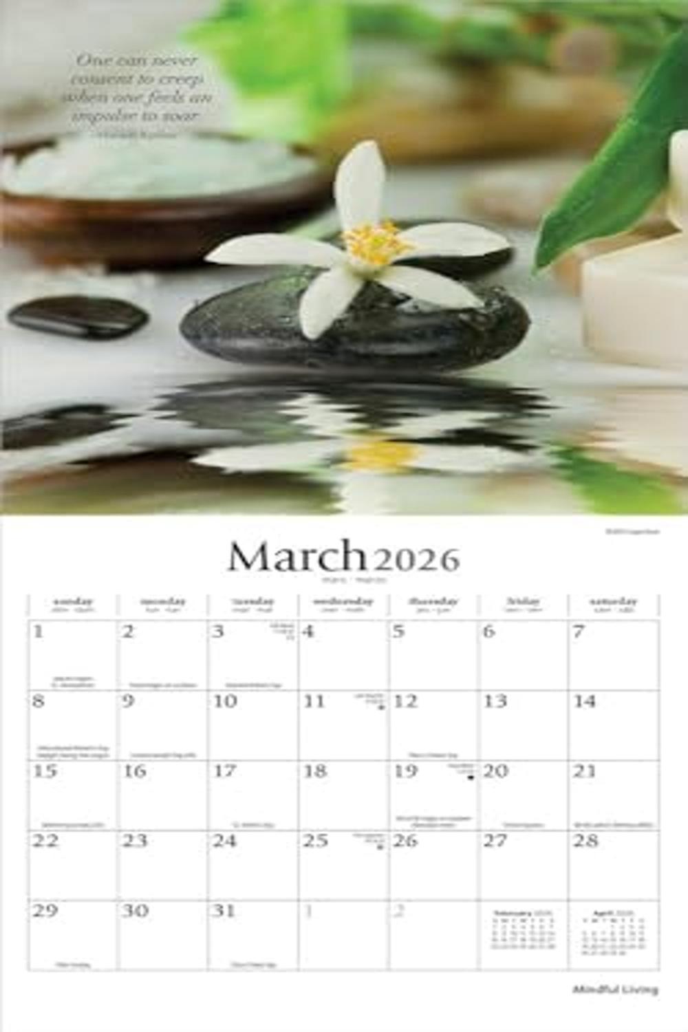 Descripción: Vida Consciente te anima a dedicarte tiempo y a vivir una vida equilibrada, feliz y tranquila. Las imágenes de cada mes incluyen citas complementarias que inspiran la reflexión y la introspección. Este mini calendario de pared de 18 x 18 cm es ideal para llevar fotos y diseños impactantes a tu hogar u oficina, incluso con espacio limitado. Abierto, su tamaño de 18 x 35 cm es perfecto para espacios pequeños. Con fechas de enero a diciembre, incluye una página adicional de mini calendario de cuatro meses, de septiembre a diciembre del año anterior, para que puedas empezar a planificar con antelación. Las cuadrículas mensuales te permiten anotar tus tareas y citas diarias, e incluyen los principales días festivos de EE. UU. y del mundo. Puedes comprarlo con la tranquilidad de que todos los componentes son reciclables. Fotografía: disfruta de impresionantes fotografías o ilustraciones a todo color cada mes. Construcción duradera: el papel resistente y de alta calidad evita que la tinta se doble y traspase, y la encuadernación duradera garantiza una larga vida útil durante todo el año. Usar de inmediato: el calendario de 16 meses consta de 12 páginas mensuales completas precedidas de una página adicional con los últimos cuatro meses del año anterior. Tamaño compacto: su tamaño pequeño es perfecto para espacios limitados. Bloques de días compactos: incluye todos los días festivos principales y las fases lunares. Especificaciones: diseños mensuales de dos páginas para 16 meses (enero-diciembre de 2026) más una IMAGEN ADICIONAL de cuatro meses que incluye minicuadrículas de septiembre a diciembre de 2025; 18 x 18 cm (cerrado); 18 x 35 cm (abierto); 28 páginas Brush Dance Ecológico: Fabricado con materiales sostenibles, incluyendo papel certificado por el Forest Stewardship Council® y tinta de soya. Abundantes opciones de regalo: Brush Dance cuenta con más de 1000 calendarios con temas populares en varios formatos para que te mantengas organizado. Enviar comentarios Paneles laterales Historial Guardadas