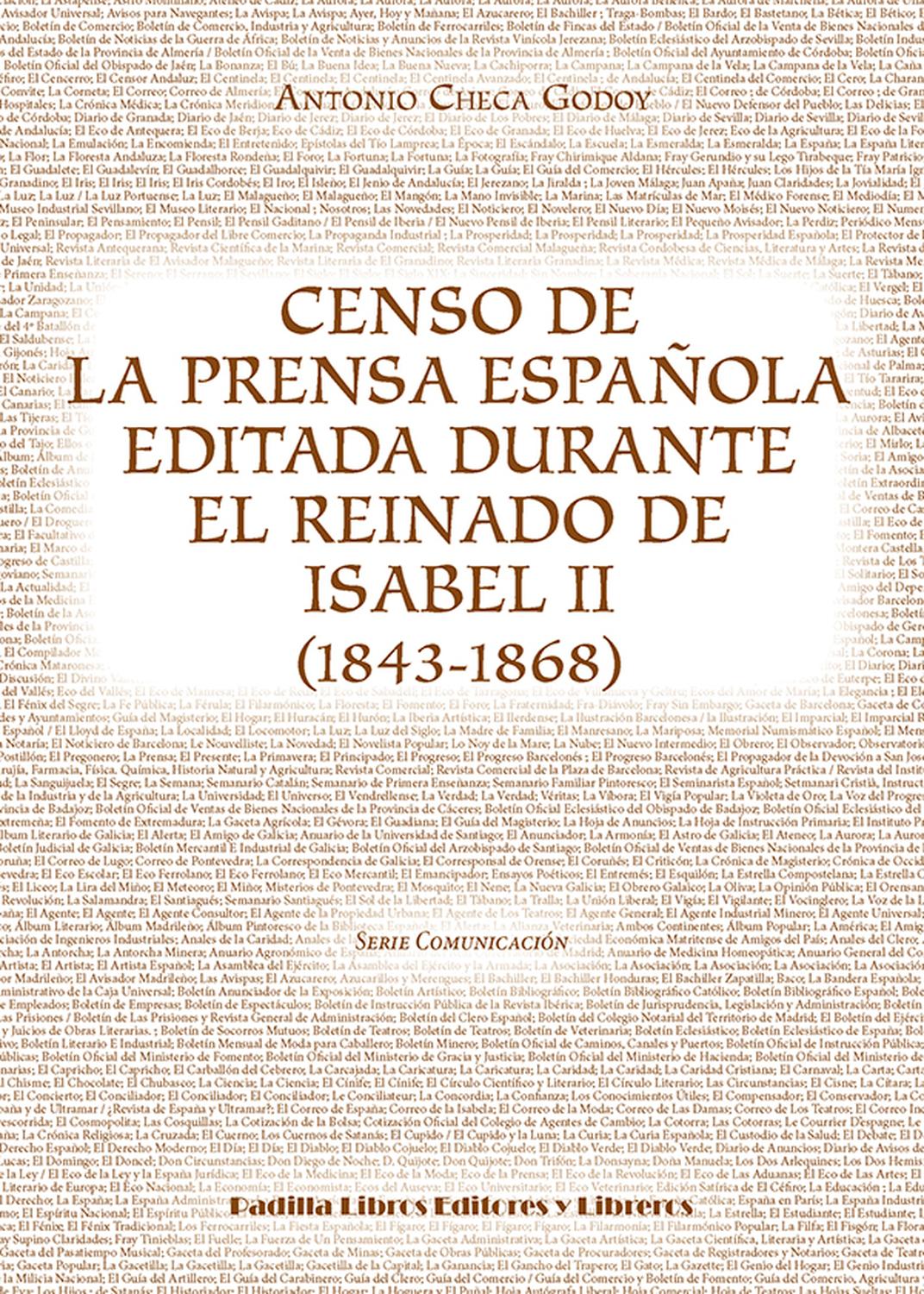 Descripción: En el censo que se ofrece aquí se referencian en torno a los 3800 periódicos editados en el país en el cuarto de siglo de reinado efectivo de Isabel II, desde la declaración de su mayoría de edad, en noviembre de 1843, a su destronamiento en septiembre de 1868. Una etapa de indudable crecimiento de la prensa en España pese a tratarse también de una etapa de intensa censura, de exigencia a los periódicos de elevados depósitos previos y de continuas sanciones y cierres. No menos de 300 periódicos son suspendidos por el gobierno y ya no reaparecerán. Pese a ello, por el crecimiento económico y la aparición de nuevos intereses minas, ferrocarriles, la expansión de la imprenta, el asentamiento de los partidos políticos y otros factores, se produce ese crecimiento: más de 150 poblaciones españolas tendrán en esos años algún medio, de ellas medio centenar alcanzarán a editar diarios. Prensa política, en la terminología de la época, es decir, que trata todo tipo de cuestiones, y prensa informativa, pero sin análisis ni críticas de la acción de los gobiernos, y en paralelo una prensa especializada que crece y se diversifica también: prensa médica, jurídica, religiosa, educativa, burocrática, empresarial, literaria... En el censo que se ofrece aquí se referencian en torno a los 3?800 periódicos editados en el país en esos 25 años.