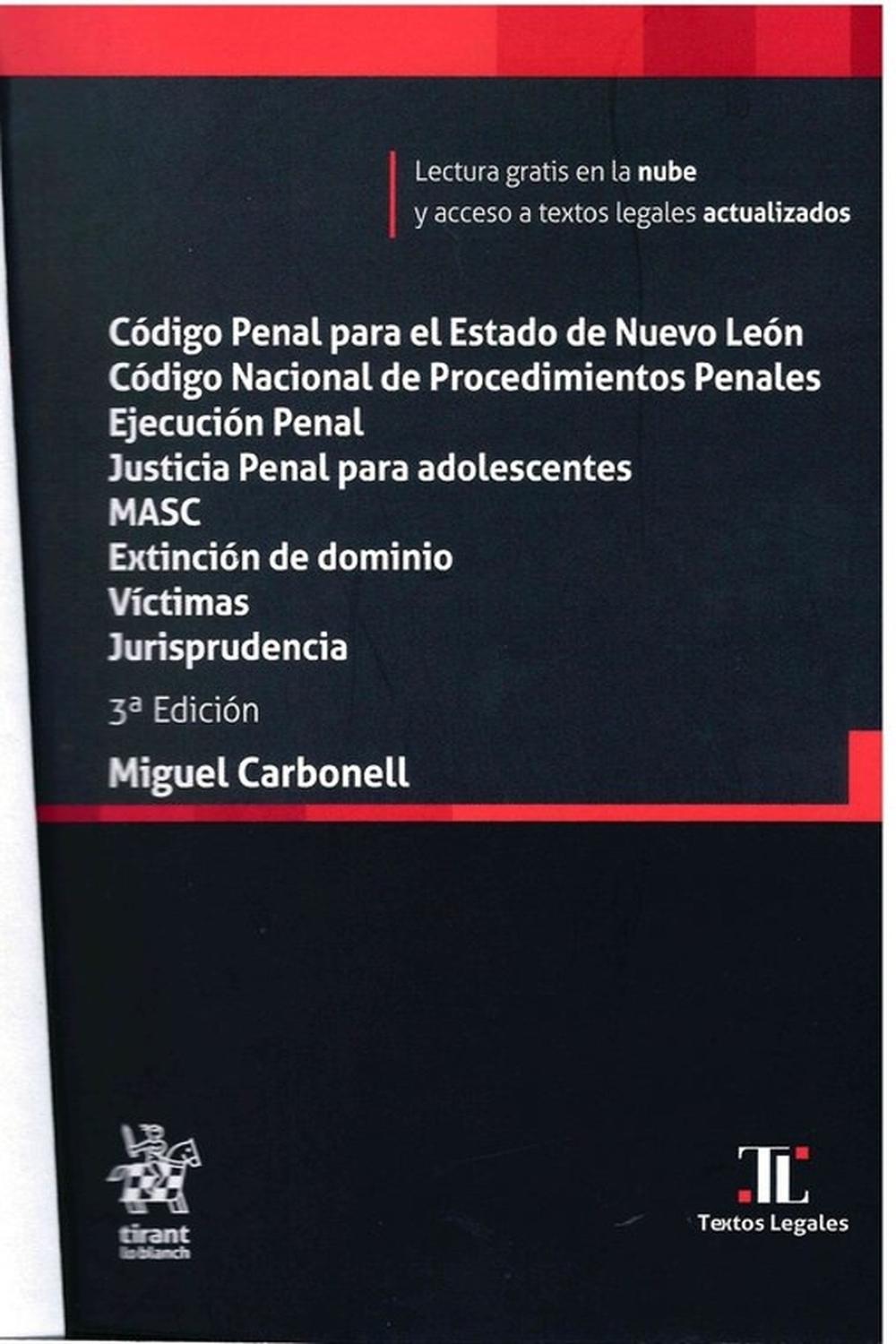 Descripción: Código Penal para el Estado de Nuevo León. Código Nacional de Procedimientos Penales Ejecucion Penal Justicia Penal para Adolescentes MASC Extincion de dominio Victimas Jurisprudencia 3ª ed