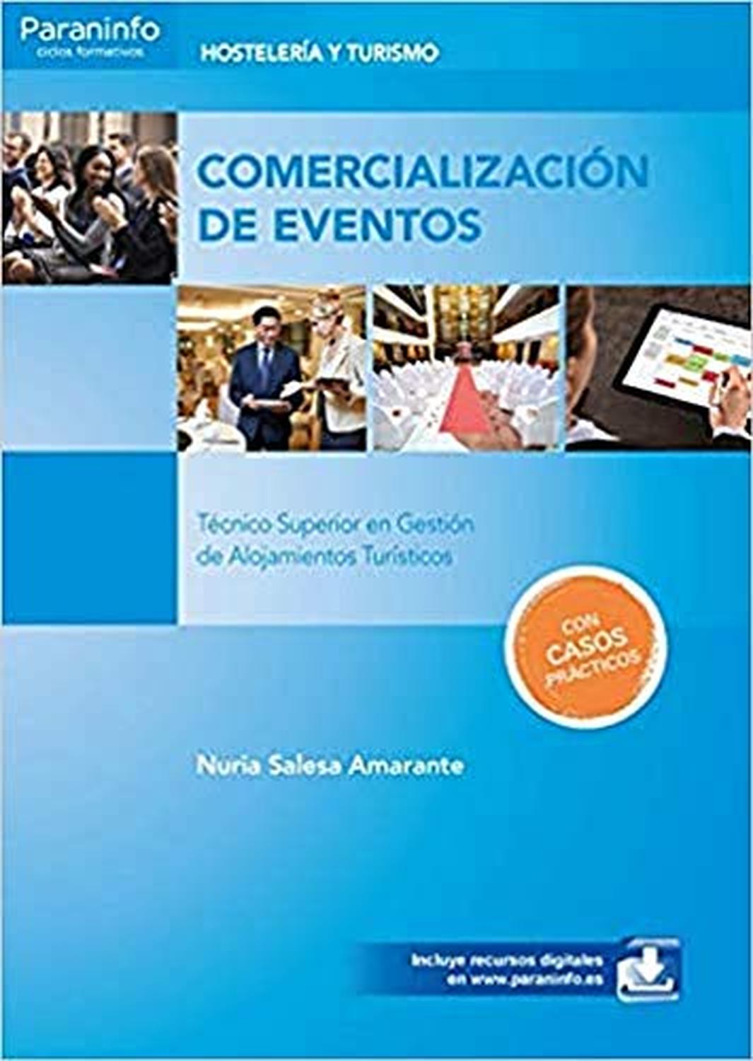 El profundo conocimiento del cliente y;de sus necesidades para adaptar;y personalizar el producto garantizan;el éxito en la comercialización;de eventos.;El libro desarrolla los contenidos del módulo profesional de Comercialización de Eventos, del Ciclo Formativo de grado superior de Gestión de Alojamientos Turísticos, de la familia profesional de Hostelería y Turismo.;Además, es válido como manual para el módulo MF1056_3 Gestión de Eventos, del Certificado de Profesionalidad HOTG0108 Creación y Gestión de Viajes Combinados y Eventos de la misma familia.;Comercialización de eventos es el manual perfecto para conocer los principios básicos de la comercialización de diferentes tipos de eventos en diversos contextos. El libro cuenta con multitud de ejemplos prácticos, actuales y reales que ayudarán al alumnado a tener una visión global del sector. Está enfocado a adquirir las competencias en la comercialización de eventos en el complejo sistema turístico actual, dando a conocer las principales tendencias del mercado y las nuevas necesidades de la demanda.;Nuria Salesa Amarante es graduada en Turismo y profesora de Enseñanza Secundaria en la especialidad de Economía, profesora universitaria de Gestión del Patrimonio Cultural y Diseño de Viajes Combinados, y Guía Oficial Profesional.