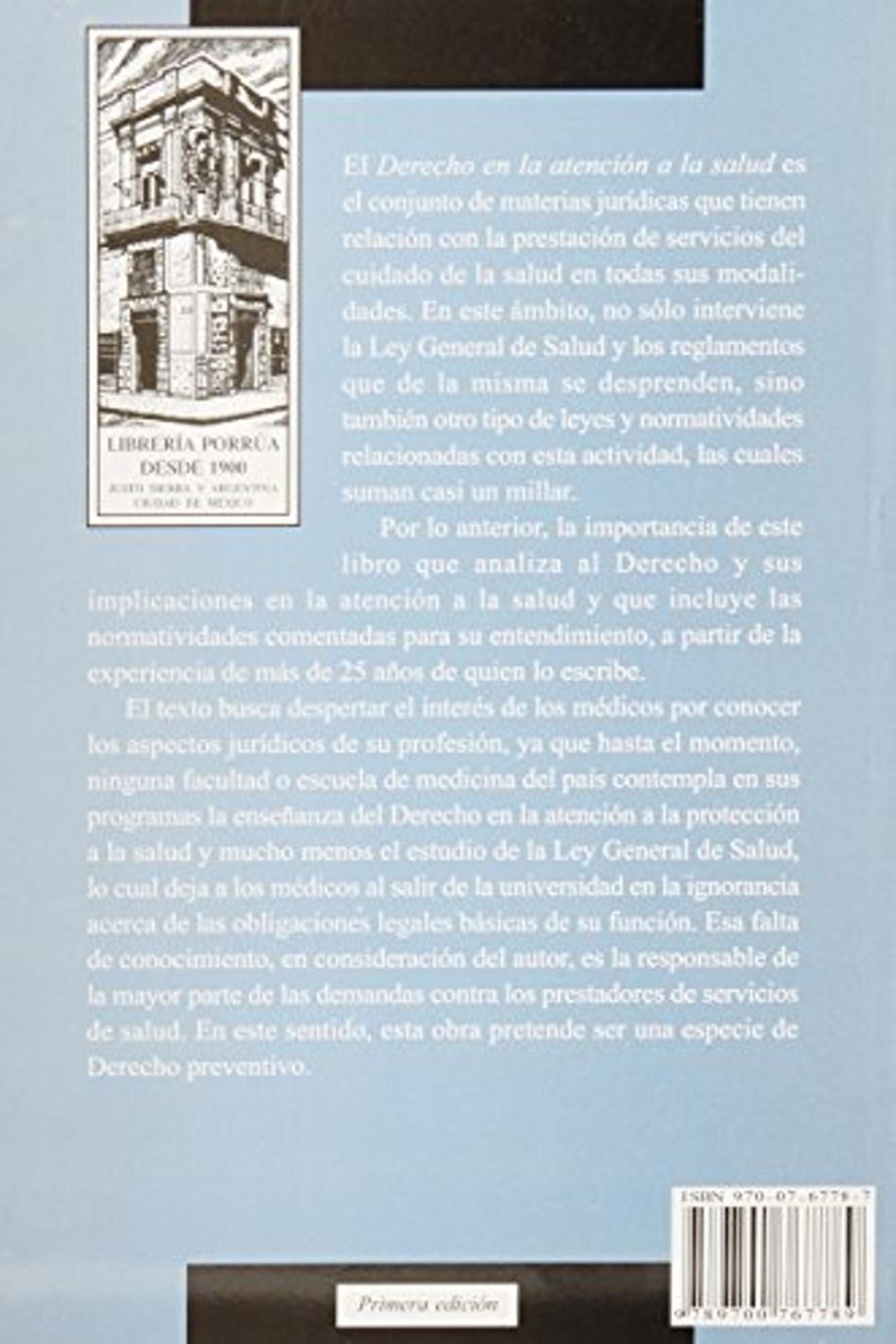 Descripción: El derecho en la atención a la salud es el conjunto de materias jurídicas que tienen relación con la prestación de servicios del cuidado de la salud en todas sus modalidades. En este ámbito ,no solo interviene la Ley General de Salud y los reglamentos que de la misma se desprenden, si no también otro tipo de leyes y normatividades relacionadas con esta actividad, las cuales suman casi un millar.