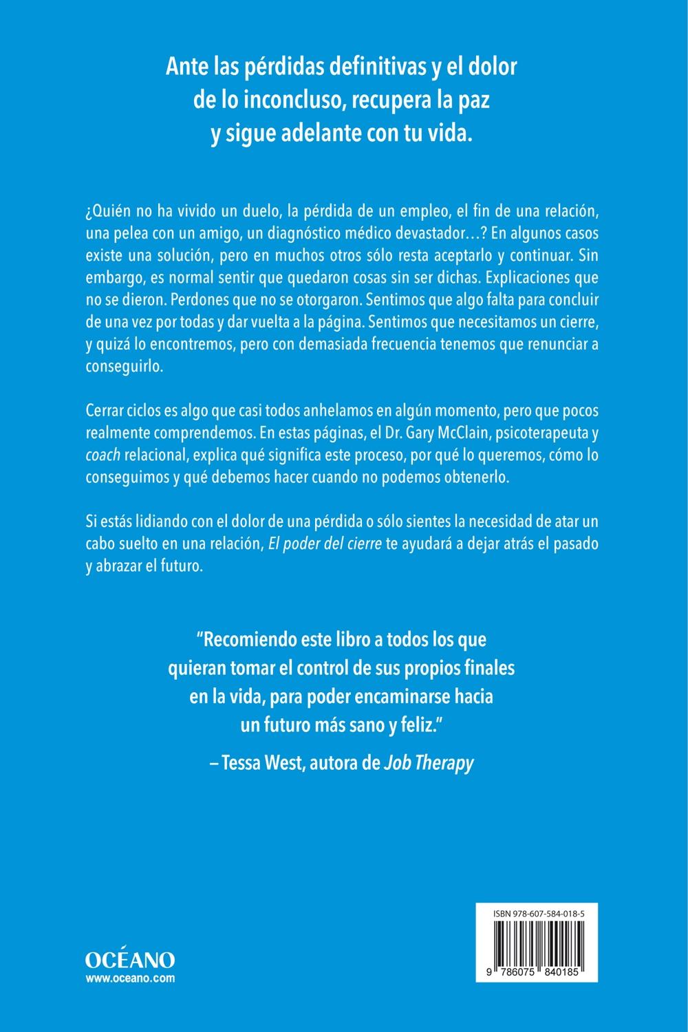 Descripción: ¿Quién no ha vivido un duelo, la pérdida de un empleo, el fin de una relación, una pelea con un amigo, un diagnóstico médico devastador…? En algunos casos existe una solución, pero en muchos otros sólo resta aceptarlo y continuar. Sin embargo, es normal sentir que quedaron cosas sin ser dichas. Explicaciones que no se dieron. Perdones que no se otorgaron. Sentimos que algo falta para concluir de una vez por todas y dar vuelta a la página. Sentimos que necesitamos un cierre, y quizá lo encontremos, pero con demasiada frecuencia tenemos que renunciar a conseguirlo. Cerrar ciclos es algo que casi todos anhelamos en algún momento, pero que pocos realmente comprendemos. En estas páginas, el Dr. Gary McClain, psicoterapeuta y coach relacional, explica qué significa este proceso, por qué lo queremos, cómo lo conseguimos y qué debemos hacer cuando no podemos obtenerlo.