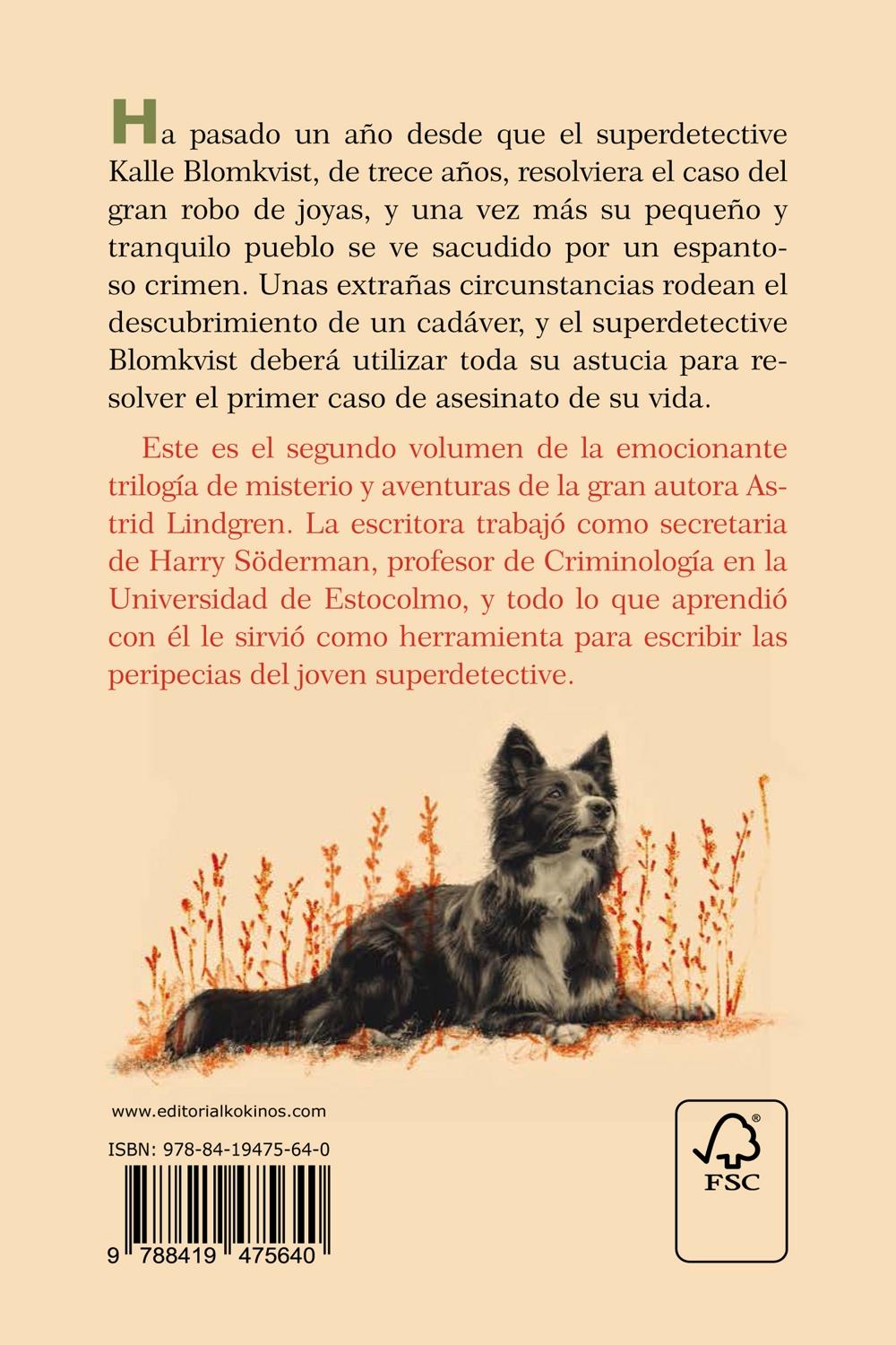 Descripción: Ha pasado un año desde que el superdetective Kalle Blomkvist de trece años, resolviera el caso del gran robo de joyas, y una vez más su pequeño y tranquilo pueblo se ve sacudido por un espantoso crimen. Unas extrañas circunstancias rodean el descubrimiento de un cadáver, y el superdetective Blomkvist deberá utilizar toda su astucia para resolver el primer caso de asesinato de su vida. Este es el segundo volumen de la emocionante trilogía de misterio y aventuras de la gran autora Astrid Lindgren. La escritora trabajó como secretaria de Harry Söderman, profesor de Criminología en la Universidad de Estocolmo, y todo lo que aprendió con él le sirvió como herramienta para escribir las peripecias del joven superdetective. Ya hay un nuevo caso para el joven superdetective. . . ¿Soportarán tus nervios tanta tensión? ¿Conseguirá resolverlo? Si lo tuyo son las novelas policiacas, este es tu libro.