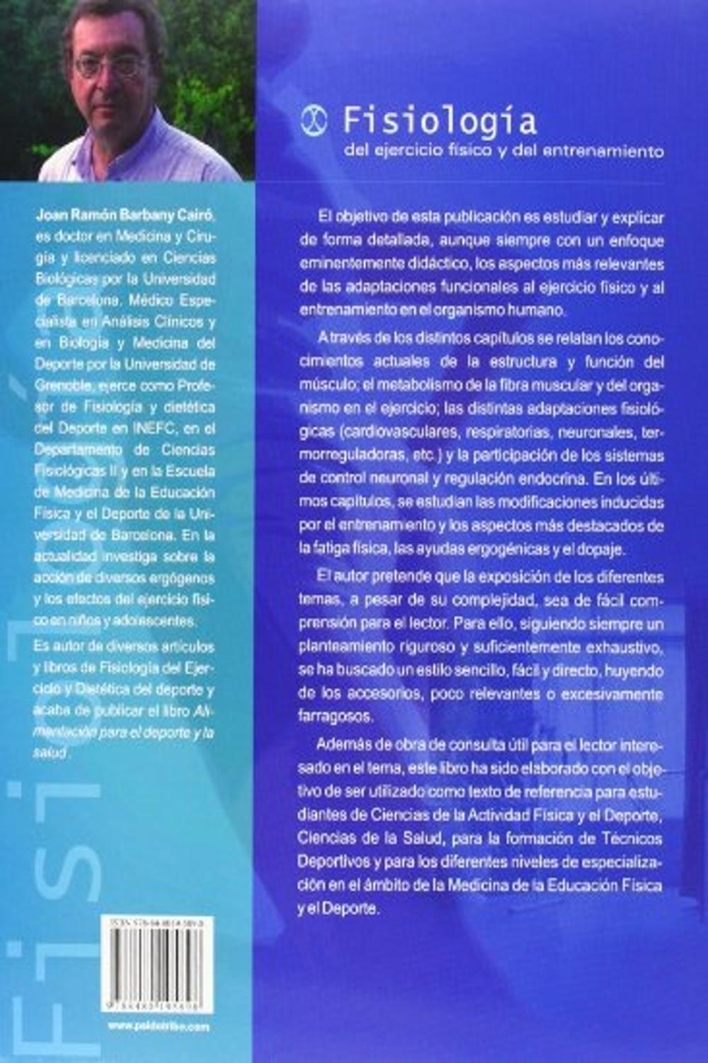 Descripción: Joan Ramon Barbany Cairo presenta una obra que relata los conocimientos actuales sobre la estructura y función del músculo, el metabolismo durante el ejercicio y las adaptaciones fisiológicas al entrenamiento.