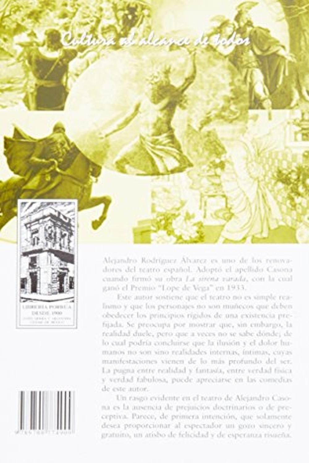 Descripción: Casona es uno de los renovadores del teatro español. Adoptó este apellido cuando firmó su obra La sirena varada, con la cual ganó el Premio Lope de Vega. Para este autor el teatro no es simple realismo y los personajes no son muñecos que deben obedecer principios rigurosos de una existencia prefijada. Se preocupa por mostrar que la realidad duele, aunque a veces no se sabe dónde; de esto podría concluirse que la ilusión y el dolor humanos no son sino cuestiones internas, íntimas, cuyas manifestaciones provienen de lo más profundo del ser. La pugna entre realidad y fantasía, entre verdad física y verdad fabulosa, puede apreciarse en las comedias de este dramaturgo. Un rasgo evidente en el teatro de Alejandro Casona es la ausencia de prejuicios doctrinarios o de preceptiva. De primera intención parece que solamente desea proporcionar al espectador un gozo sincero y gratuito, un atisbo de felicidad y de esperanza risueña.