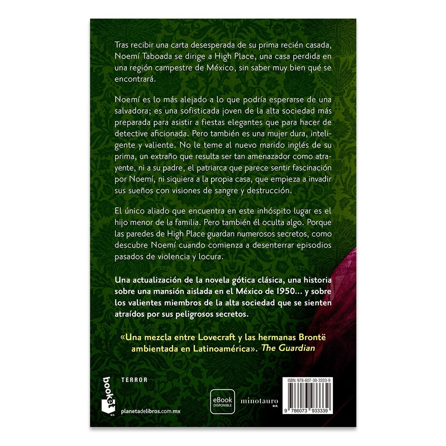 Descripción: Una novela terroríficamente brillante. Tras recibir una extraña carta de su prima recién casada, Noemí Taboada se dirige a High Place, una casa en el campo en México, sin saber qué encontrará allí. Noemí no parece tener dotes de salvadora: es glamurosa, más acostumbrada a asistir a cócteles que a las tareas de detective. Pero también es fuerte, inteligente y no tiene miedo: ni del nuevo marido de su prima, un inglés amenazante y seductor; ni de su padre, el antiguo patriarca que parece fascinado por Noemí; ni de la casa, que empieza a invadir los sueños de Noemí con visiones de sangre y fatalidad. El único amigo que Noemí encontrará es el hijo menor de la familia, quien también da la impresión de estar tapando secretos oscuros. Porque hay muchos secretos escondidos en las pareces de High Place, como descubrirá Noemí cuando empiece a desenterrar historias de violencia y locura. Cautivada por este mundo aterrador a la par que seductor, a Noemí le resultará difícil salvar a su prima... O incluso escapar de esa enigmática casa. Premio Goodreads a Mejor Novela de Terror 2020. Premio Locus a Mejor Novela de Terror 2021.